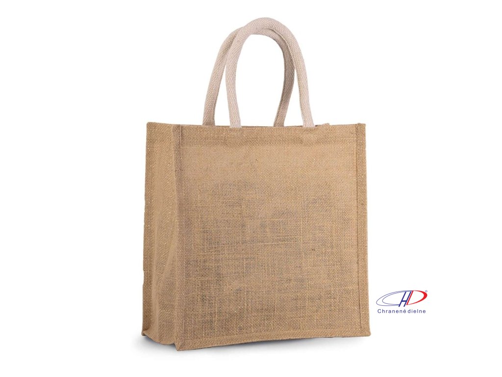 Jutová plátenná taška s bavlnenými ušami. Dostupné aj v malej a strednej veľkosti. Farba natural: Certifikát STANDARD 100 podľa OEKO-TEX® č. CQ 1164/1, IFTHDodatočné parametre