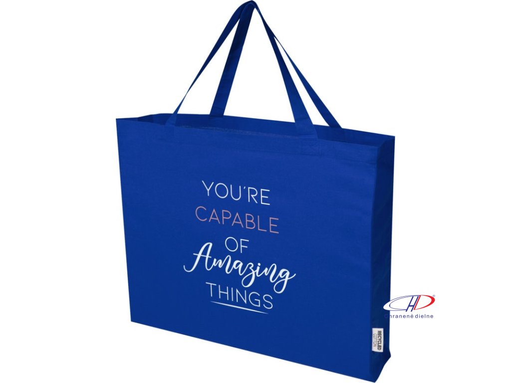 Nákupná taška Odessa vyrobená zo 100% recyklovanej bavlny s certifikáciou GRS je navrhnutá pre pohodlné nosenie s 30 cm dlhými ušami a veľkým hlavným priestorom s klinom. Nosnosť až 10 kg. Vyrobené v Indii.Dodatočné parametre