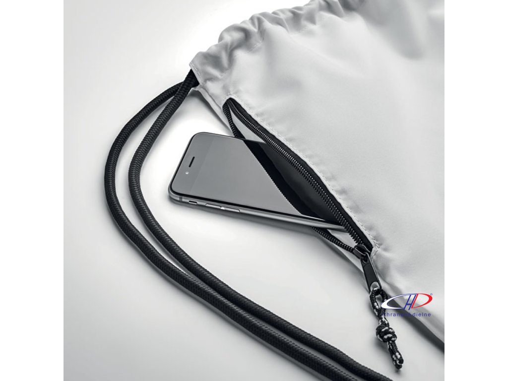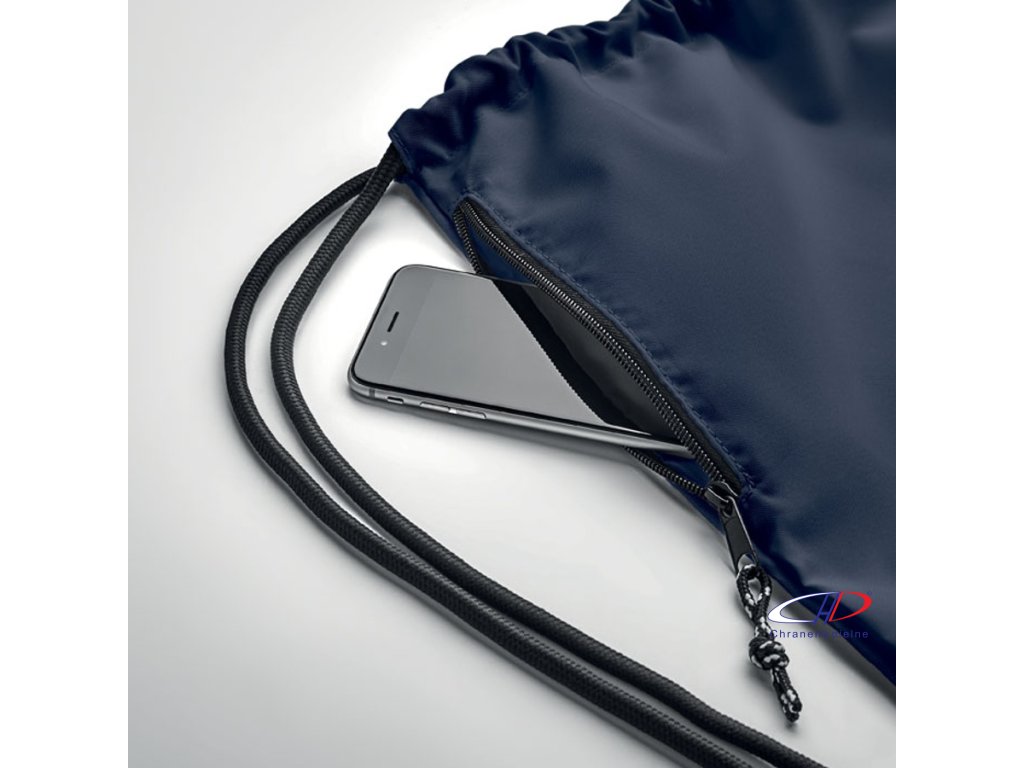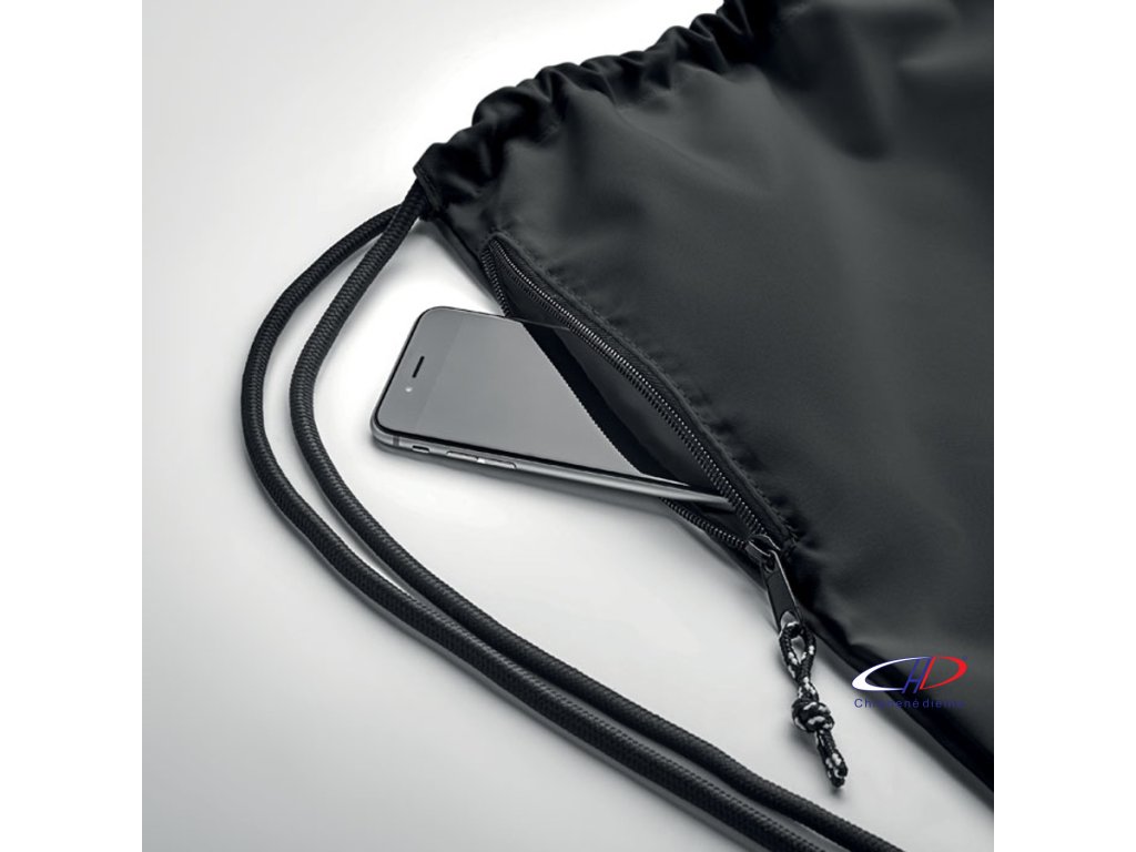 Veľký sťahovací ruksak z polyesteru 300D RPET s bočným vreckom na zips.Dodatočné parametre