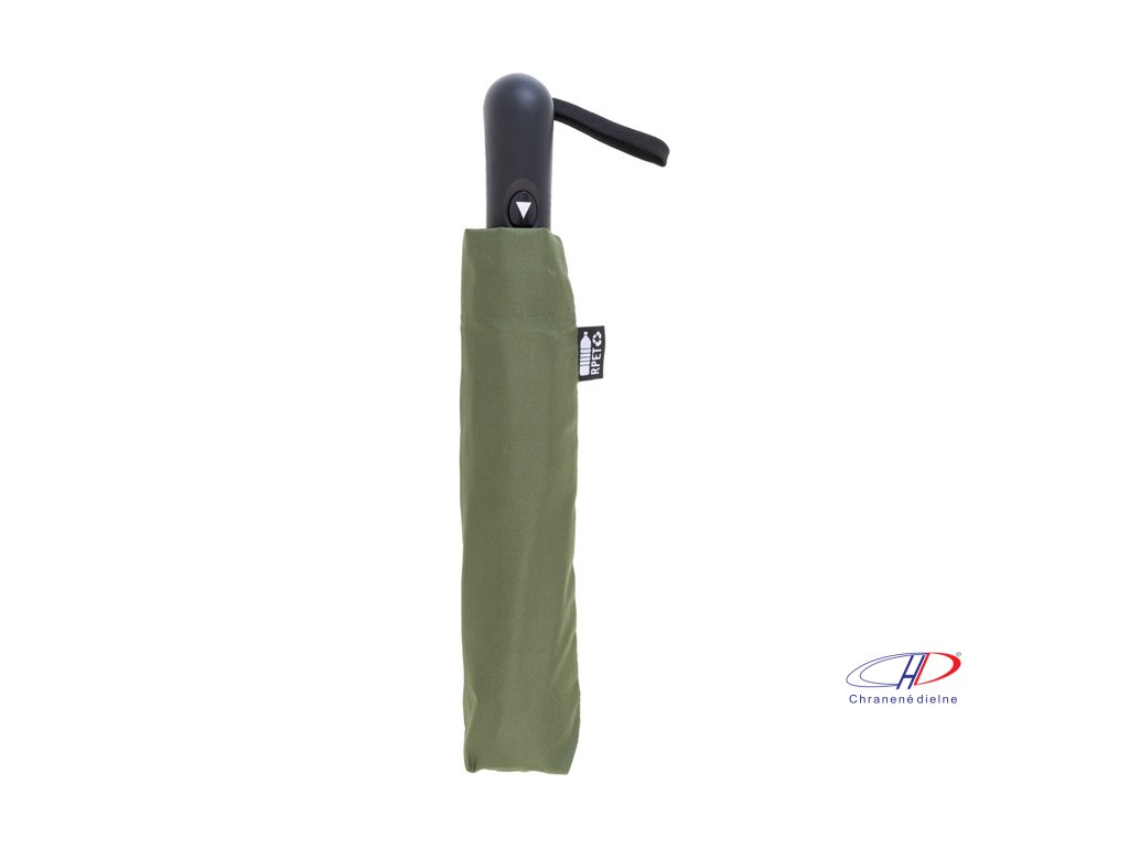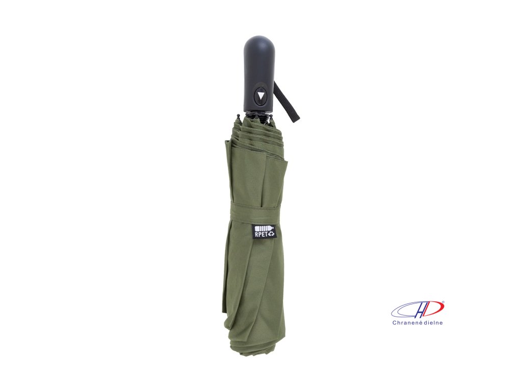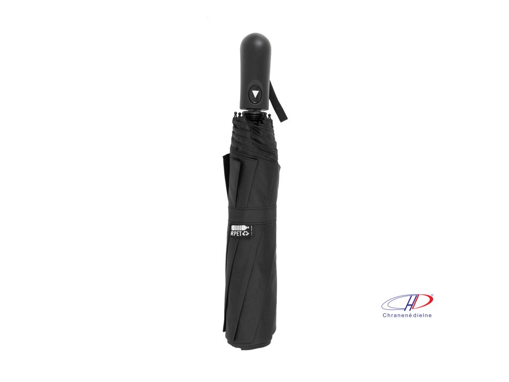 Veľký automatický skladací dáždnik odolný voči vetru s 8 panelmi v puzdre zodpovedajúcej farby. S kovovým rámom, sklolaminátovými rebrami a ABS rukoväťou s pútkom na ruku. Pongee 190T RPET. S výrazným štítkom RPET.Dodatočné parametre
