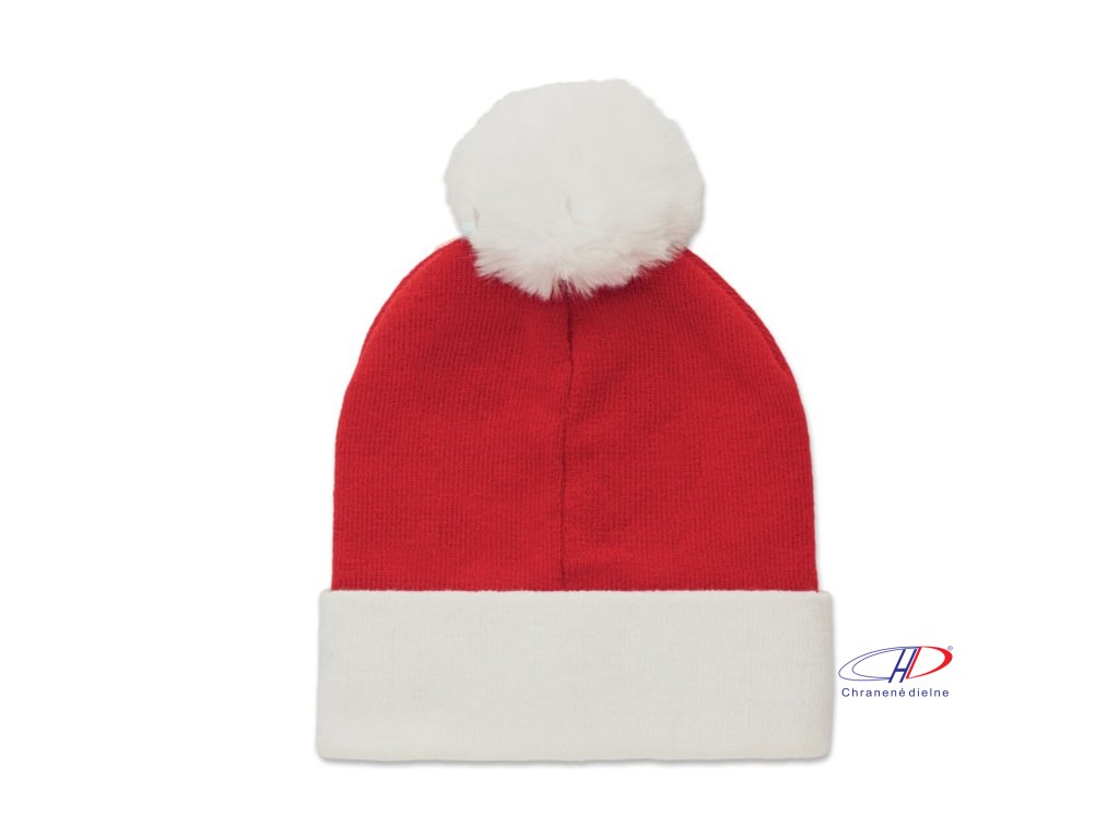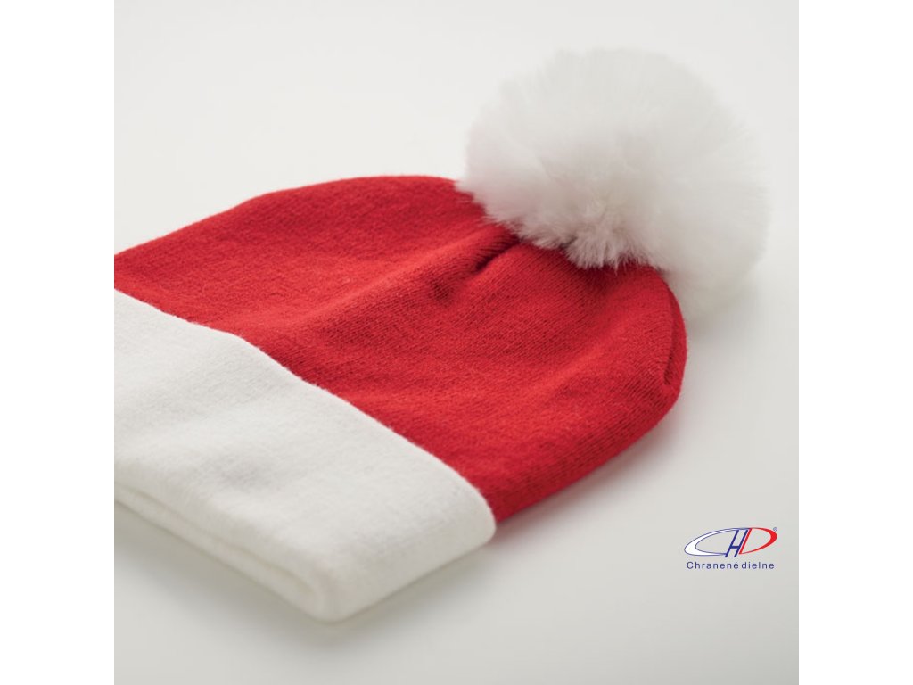 Vianočná pletená čiapka s lemom a brmbolcom. Vyrobené z PET polyesteru.