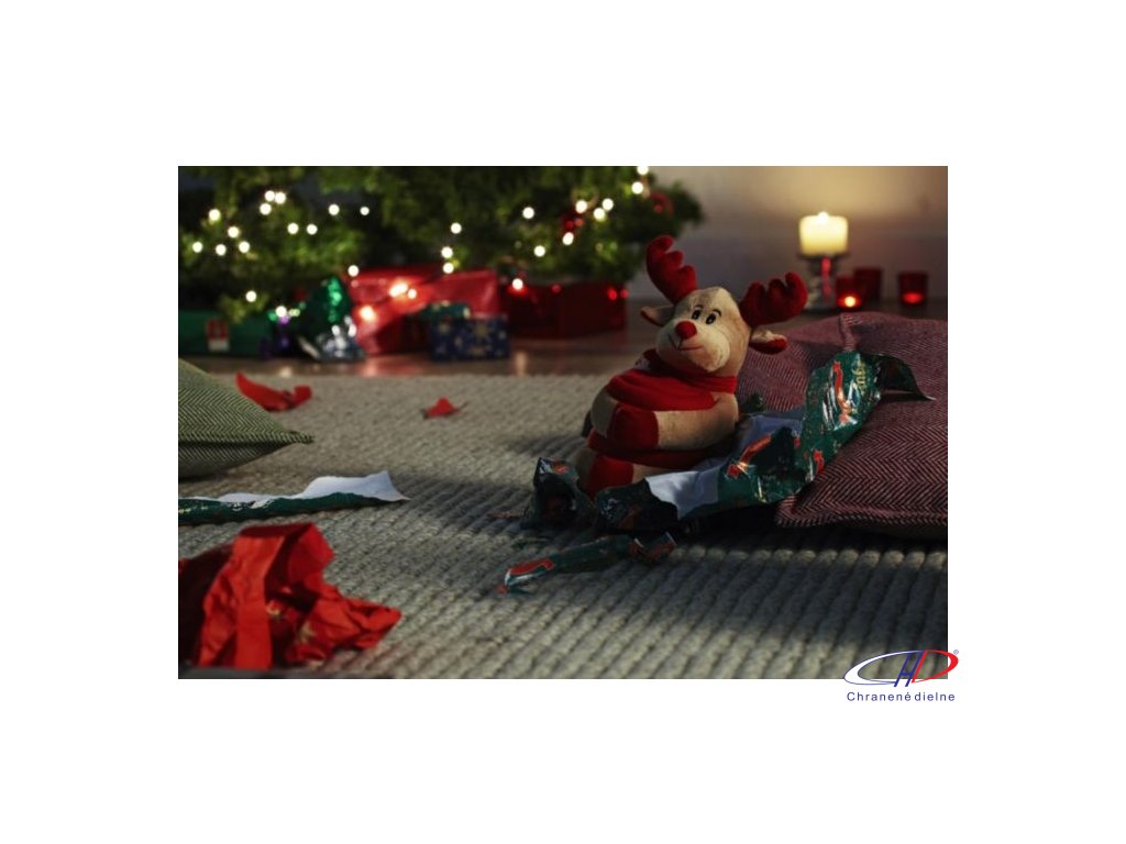 Deka (rozložená 102 x 77 cm) vrátane plyšovej hračky s vianočným motívom a visačkou na tlač. Nohy so suchým zipsom.Dodatočné parametre