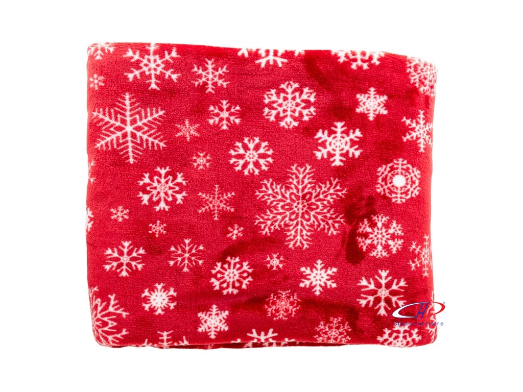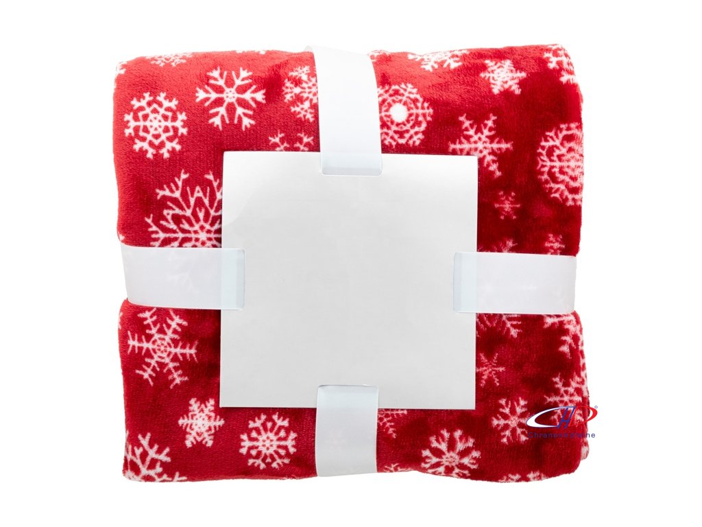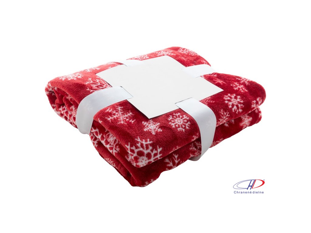 RPET flanelová fleecová vianočná deka. S potlačiteľnou papierovou kartou a stuhou.