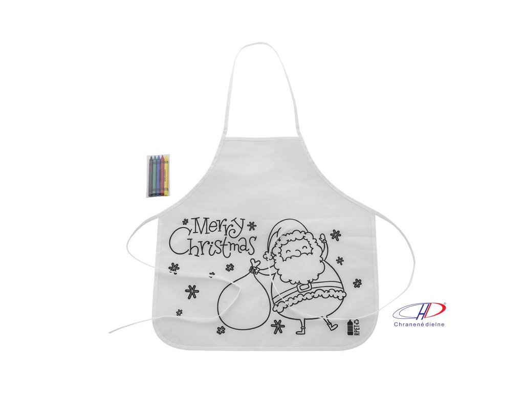 Vianočná zástera na vyfarbovanie pre deti z netkanej RPET tkaniny s 5 pastelkami.voskovkami.