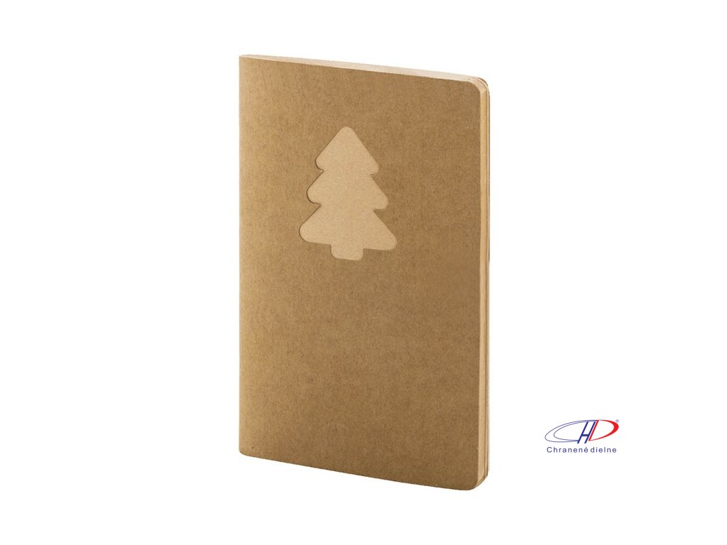 Blok A6 z recyklovaného kraftového papiera s vyrezávaným vianočným stromčekom a 60 prázdnymi listami z recyklovaného kraftového papiera.Dodatočné parametre