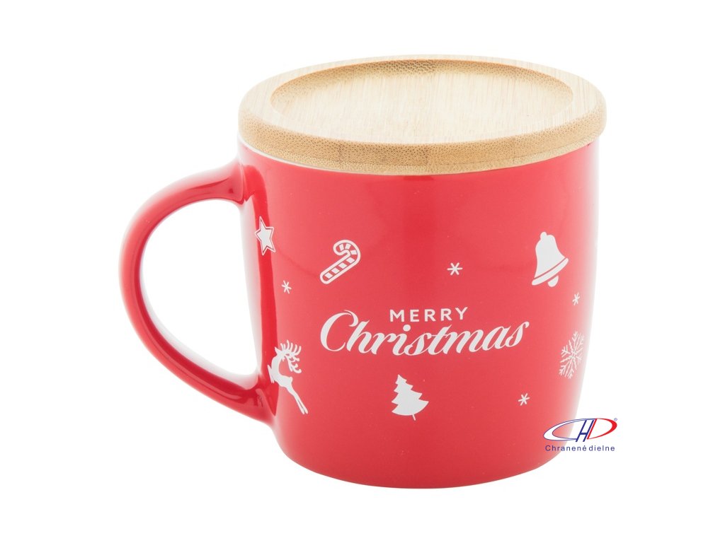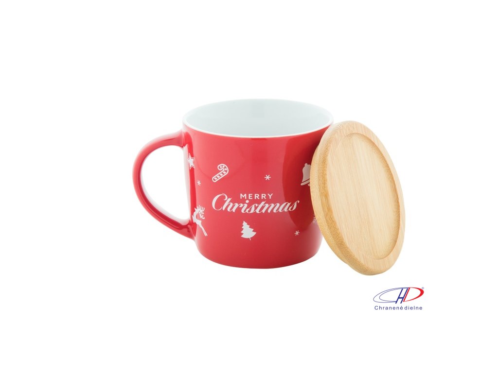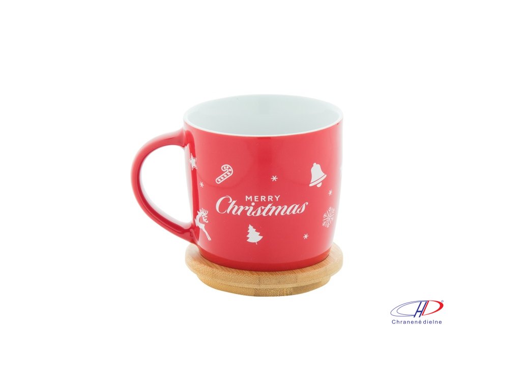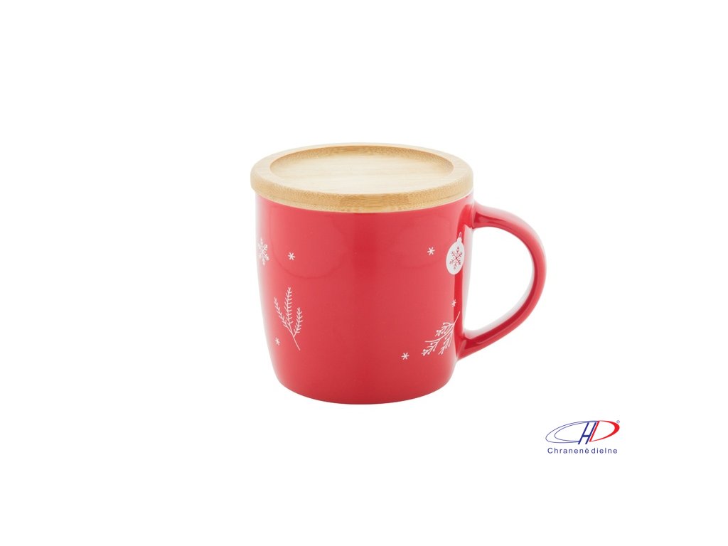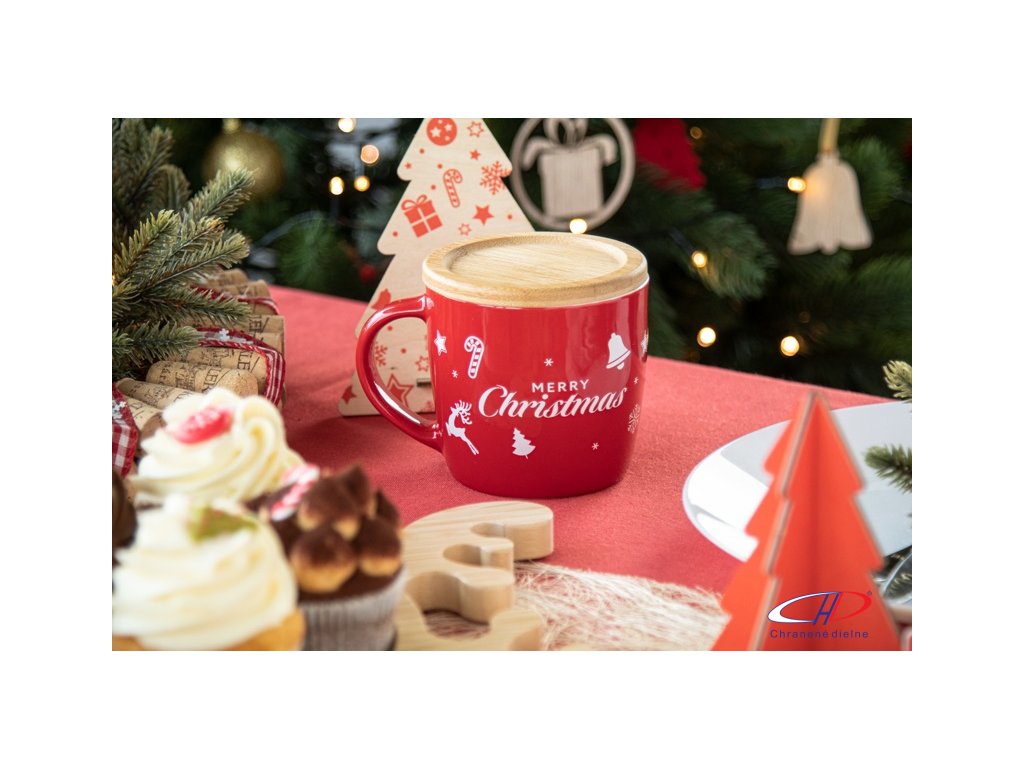 Vysoko kvalitný keramický hrnček s bambusovou táckou a vianočným dizajnom, 370 ml. V kraftovej papierovej krabici.