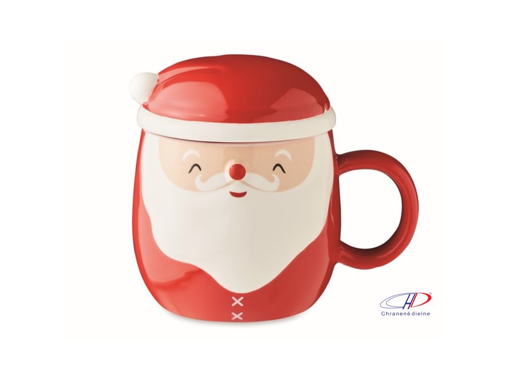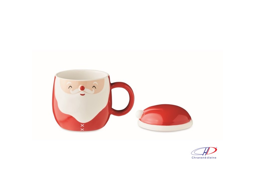 Keramický hrnček v dizajne Santa Clausa s viečkom. Objem: 370 ml.