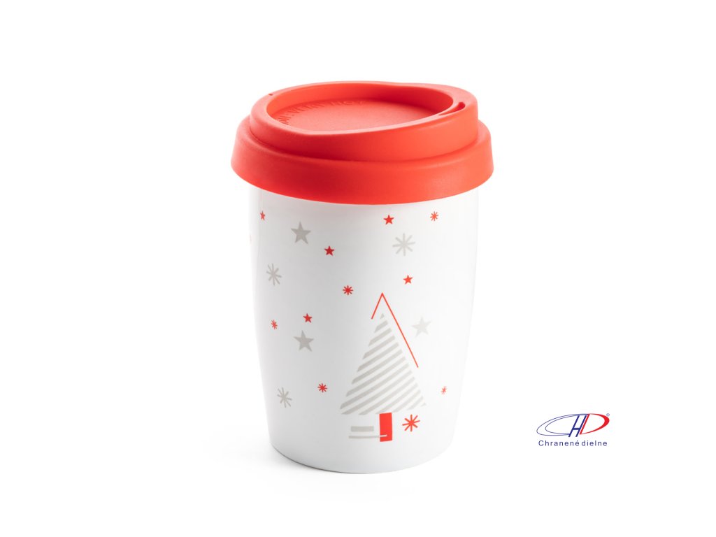 Porcelánový cestovný hrnček s vianočným motívom. S dvojitou stenou, silikónovým viečkom a objemom až do 260 ml. Dodávané v krabičke.Dodatočné parametre