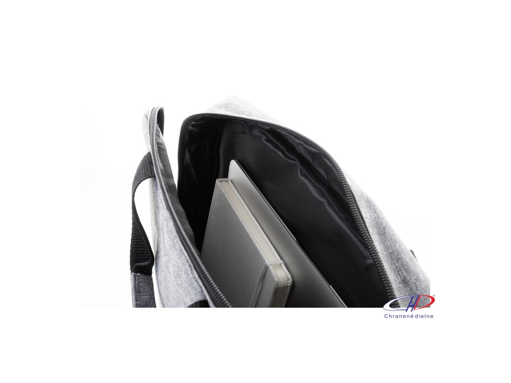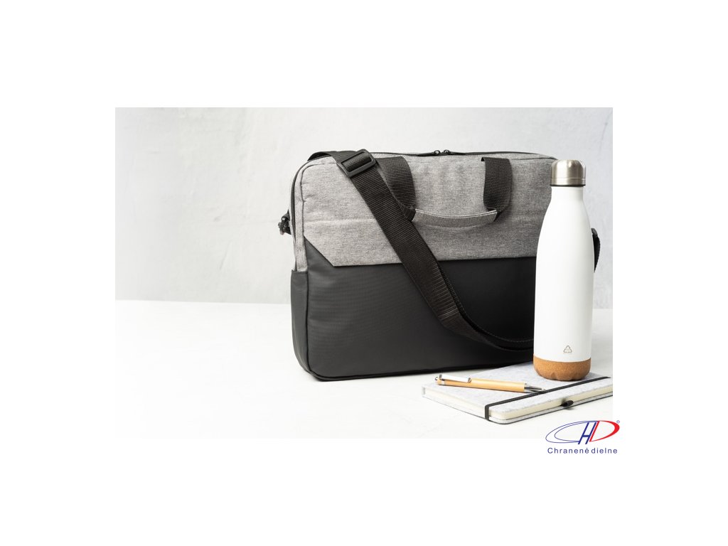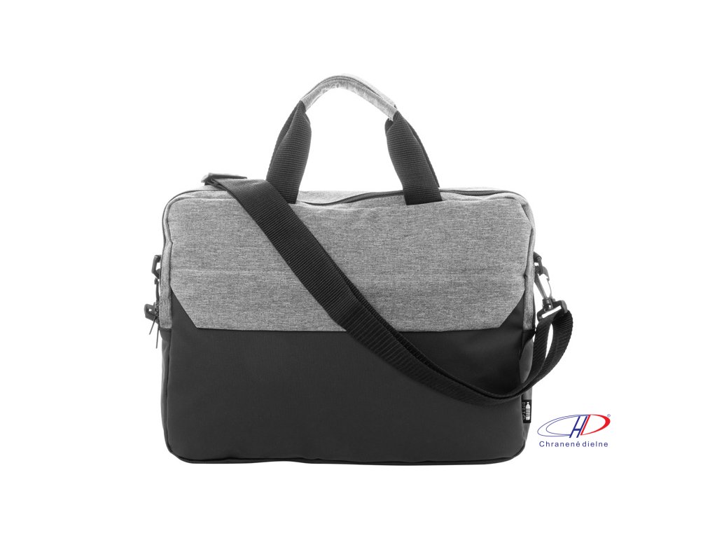 Vodotesná RPET polstrovaná taška na dokumenty a notebook s hlavnou priehradkou na zips, predným vreckom na zips a nastaviteľným ramenným popruhom. Vhodné pre notebooky do 15". 600D RPET polyester potiahnutý PU s výrazným štítkom RPET.Dodatočné parametre