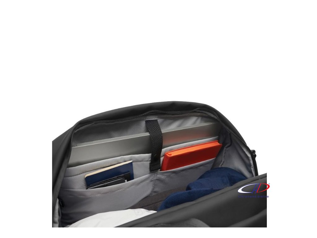 Povrch z vodeodolného PU a vodeodolný zips udržia vaše veci v suchu. Ľahký prístup k veciam, priehradka na 16" notebook a vnútorné sieťované vrecko. Podšívka z RPET so značením Aware™. Podiel recyklátu: 63%. Registrovaný design®.Dodatočné parametre