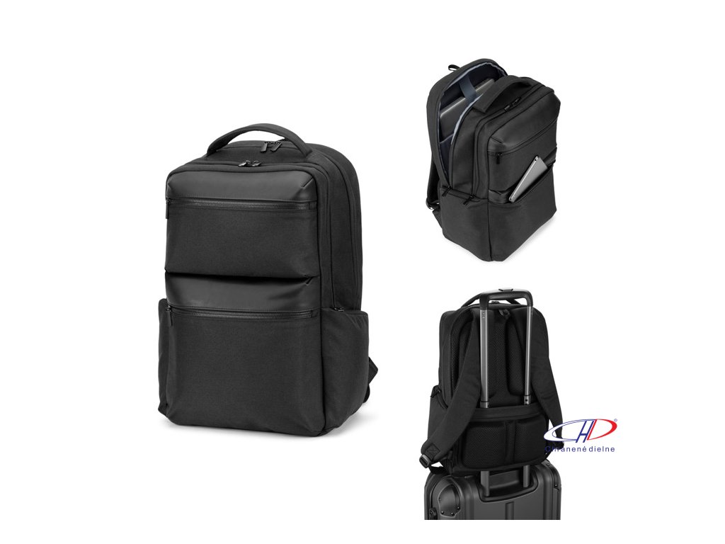Vodeodolný. Priehradka na 17,3-palcový notebook a 10,5-palcový tablet. Objem 23 litrov, 2 hlavné polstrované priehradky, 2 predné a 2 bočné vrecká na zips, zadný extra polstrovaný panel, zadné vrecko na zips, vystužená rukoväť.Dodatočné parametre