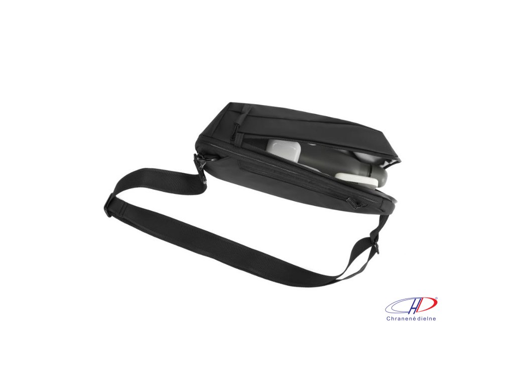 Hlavná priehradku v tvare L so širokým otváraním a rozšíriteľným oddielom. Dizajn proti krádeži, zadné vrecko, otočný uzáver zipsu, vodeodolný povrch. Má dostatočnú kapacitu pre 8” iPad min, či peňaženku. Podiel recyklátu: 17%. Registrovaný design®.Dodatočné parametre