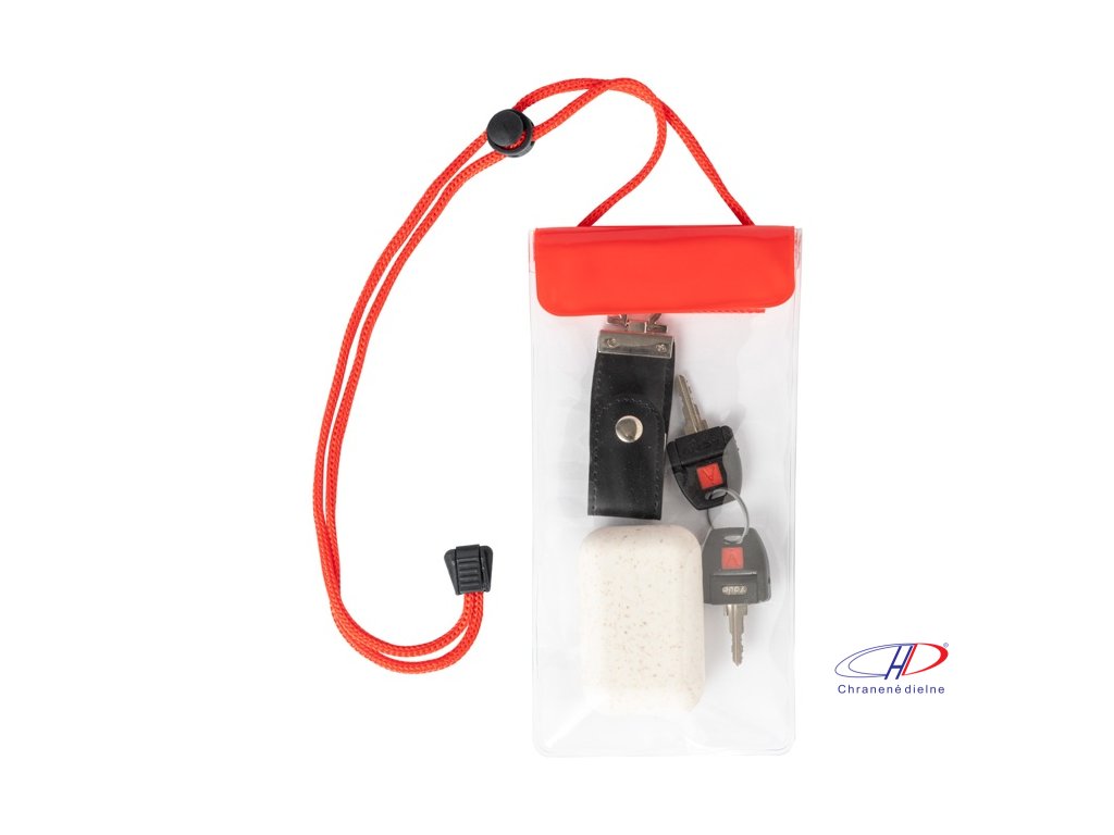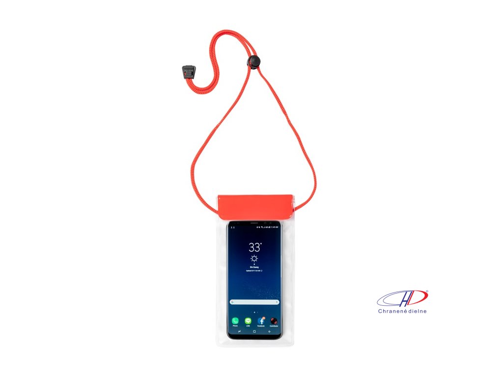 Vodotesné puzdro na mobilný telefón s dotykovou obrazovkou a opaskom na krk v zodpovedajúcej farbe, PVC. Hodí sa pre mobilné telefóny do veľkosti displeja 6,5".Dodatočné parametre