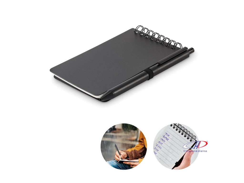 Vodeodolný zápisník s perom , Black