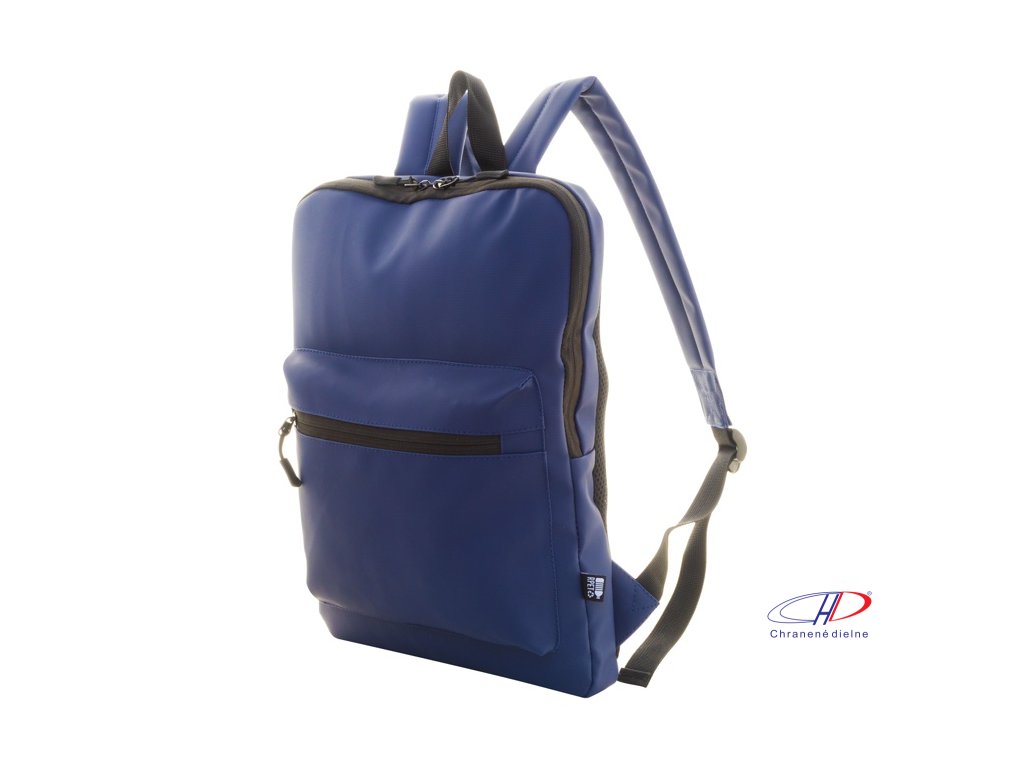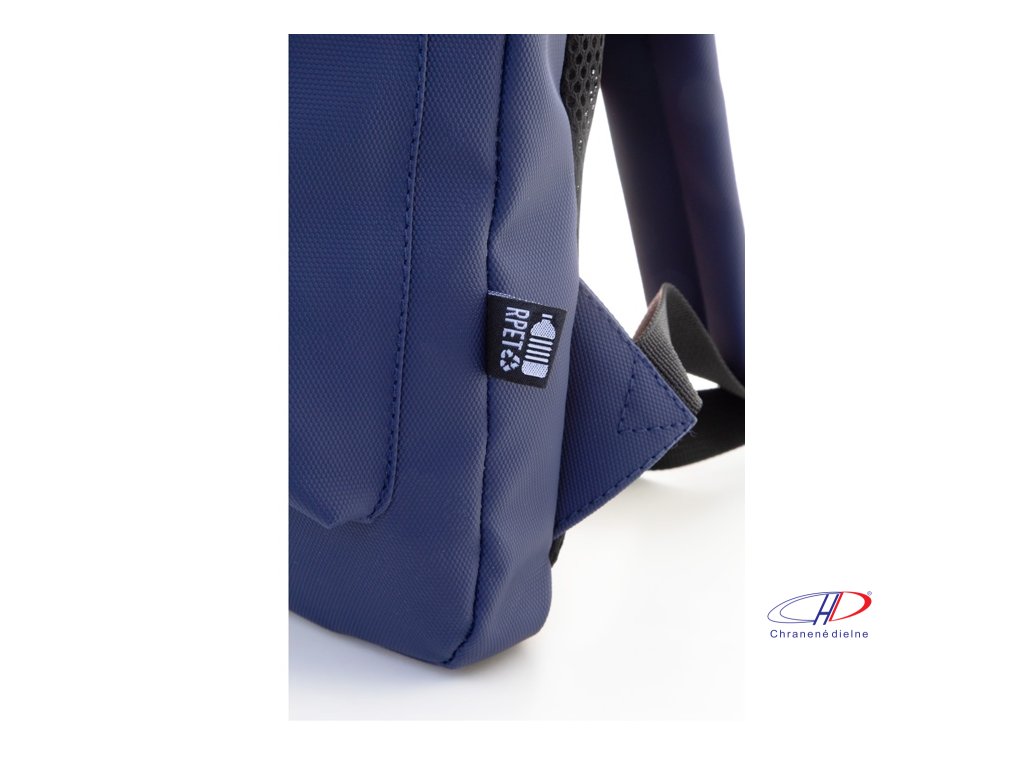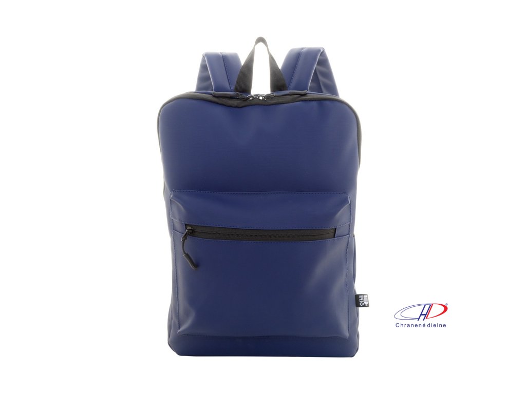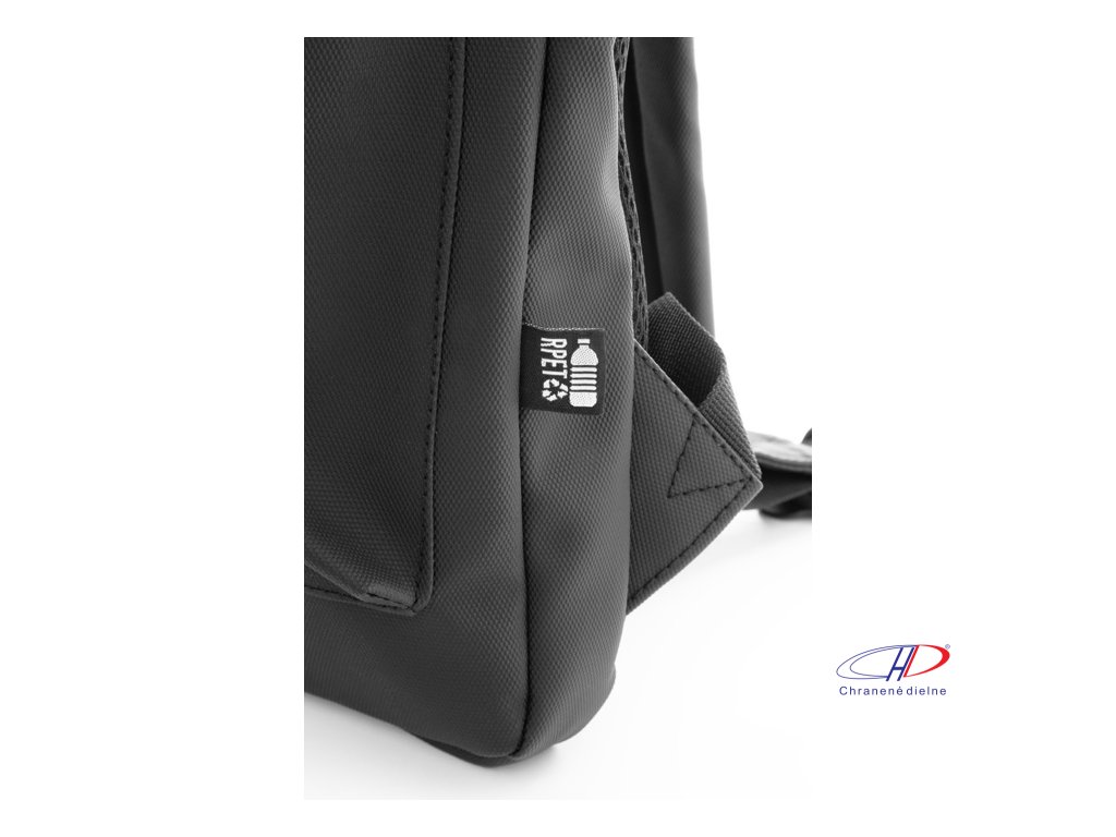 Vodotesný tenký batoh na notebook RPET s priehradkou na notebook (15") na zips a predným vreckom na zips. S polstrovaným chrbtom a ramennými popruhmi. Polyester 600D RPET potiahnutý PU, s výrazným štítkom RPET.Dodatočné parametre