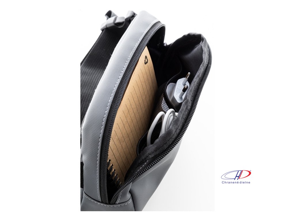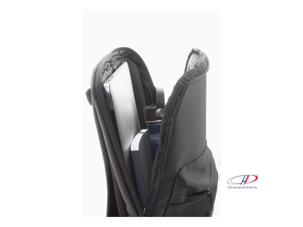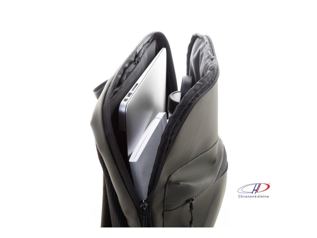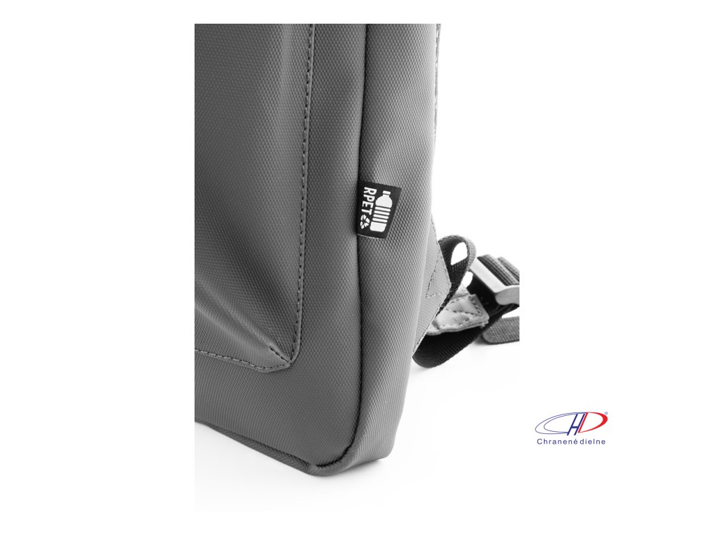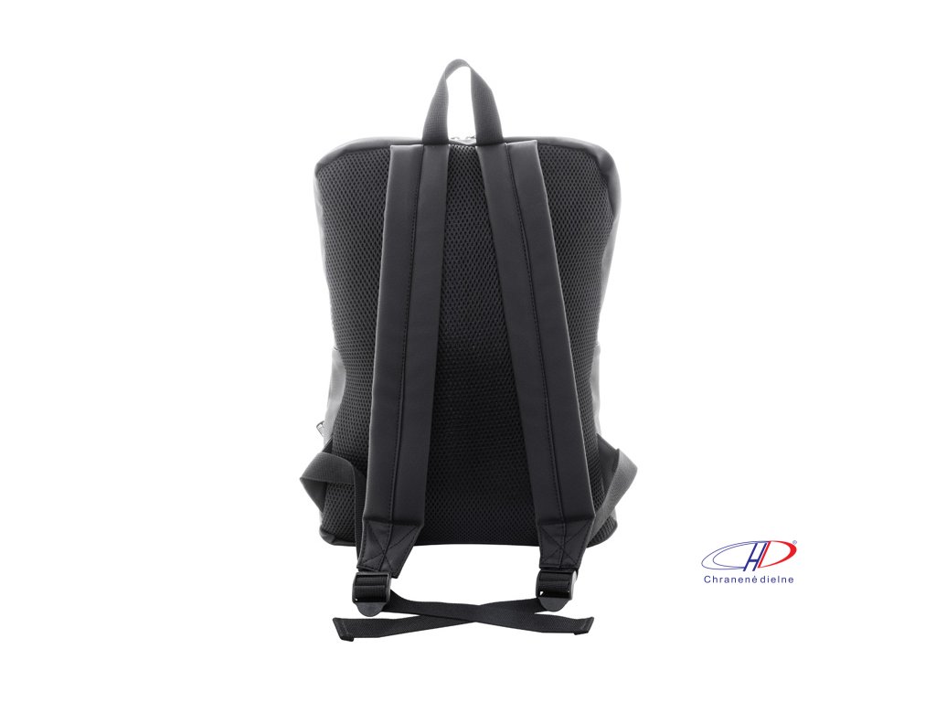 Vodotesný tenký batoh na notebook RPET s priehradkou na notebook (15") na zips a predným vreckom na zips. S polstrovaným chrbtom a ramennými popruhmi. Polyester 600D RPET potiahnutý PU, s výrazným štítkom RPET.Dodatočné parametre