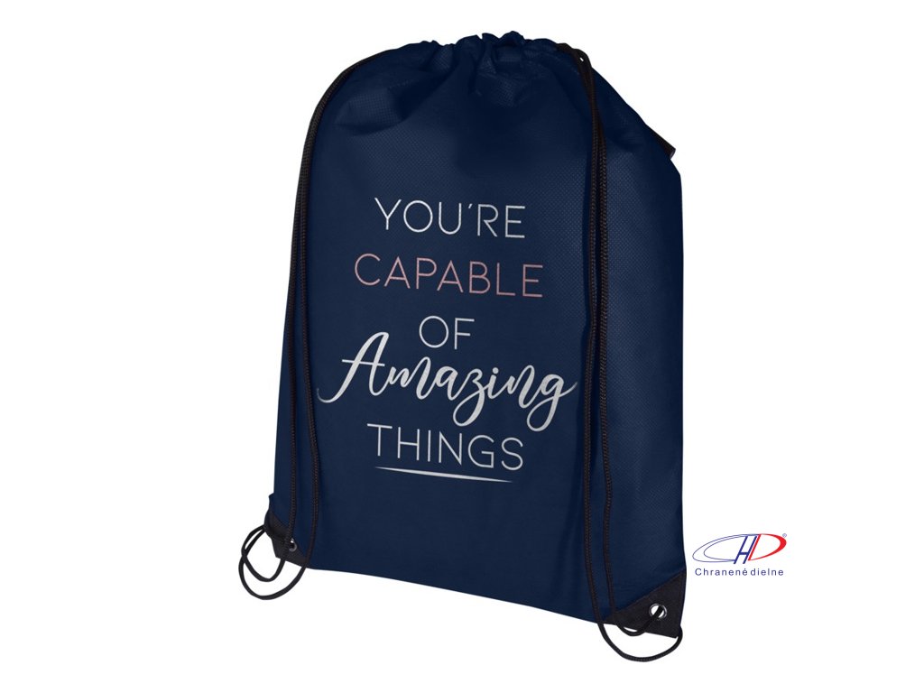Taška so sťahovacou šnúrkou Evergreen s certifikáciou GRS z odolného netkaného materiálu RPET. Objemová kapacita: 5 litrov. Nosnosť do 5 kg.Dodatočné parametre