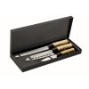 4-dielna sada na syr v darčekovom balení obsahuje: sklenenú dosku na krájanie a 3 nože z nerezovej ocele s drevenou rukoväťou.