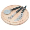 4-dielna sada na pizzu v darčekovom balení. Sada obsahuje: drevenú dosku na krájanie, nôž, okrúhly krájač a vidličku.
