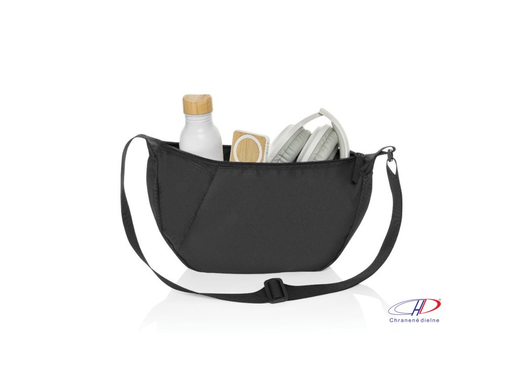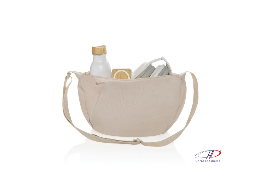 Tvar polmesiaca sa dokonale prispôsobí vášmu telu. Väčší dizajn, pridané vonkajšie zipsové vrecko poskytuje rýchly prístup. Nastaviteľný ramenný popruh. Súčasťou je AWARE™ tracer, ktorý overuje skutočné použitie recyklovaných materiálov. Bez PVC.Dodatočné parametre