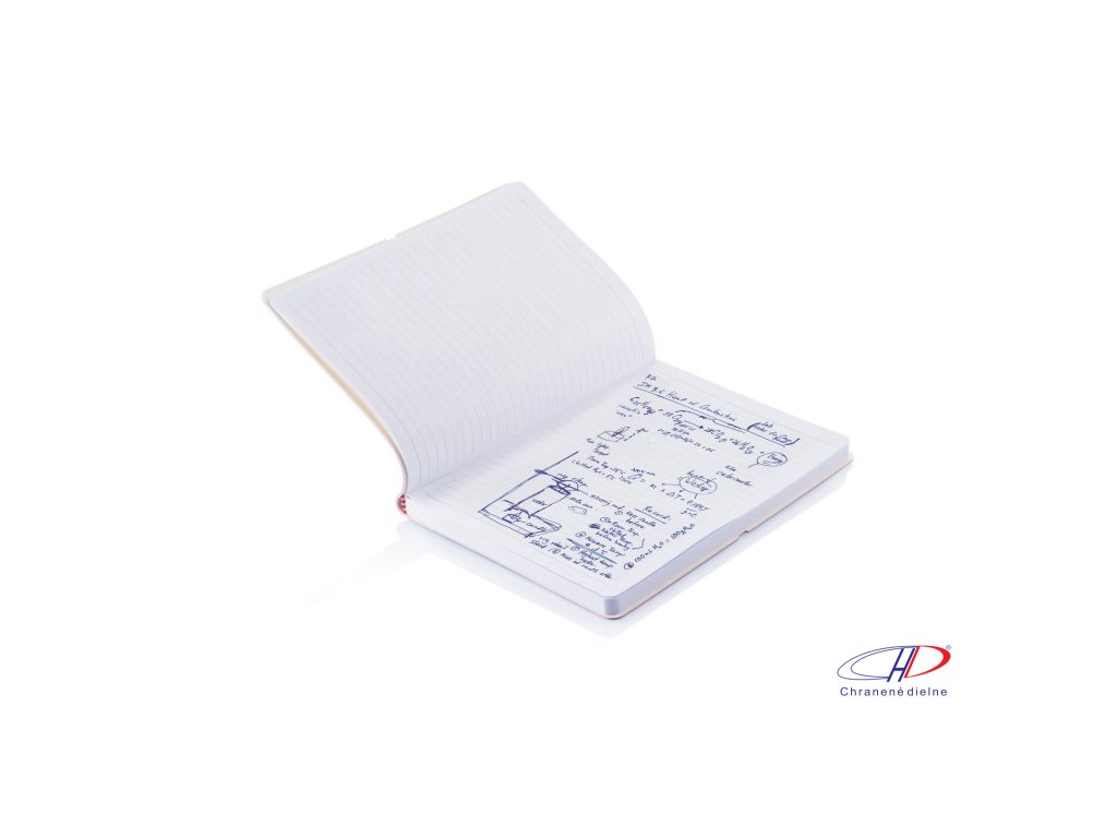 Ľahký zápisník A5 s polyuretánovými mäkkými doskami a so 192 linajkovými stranami z 80g/m2 papiera.