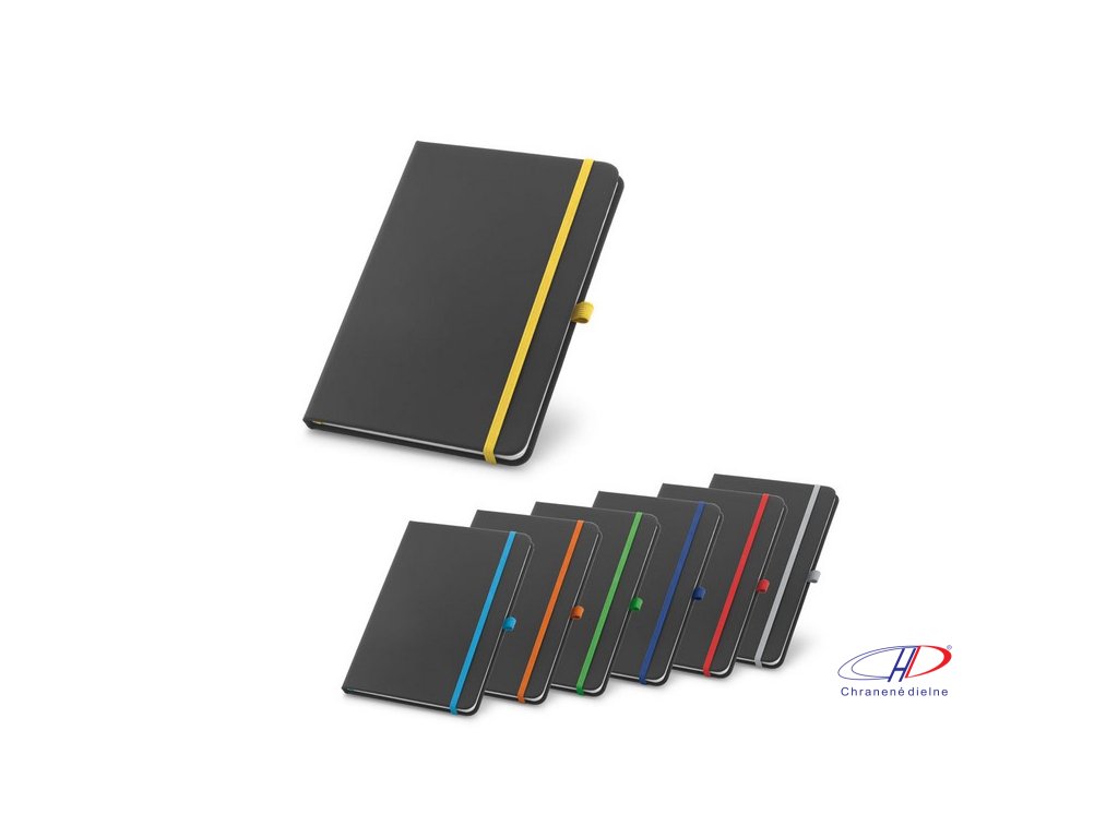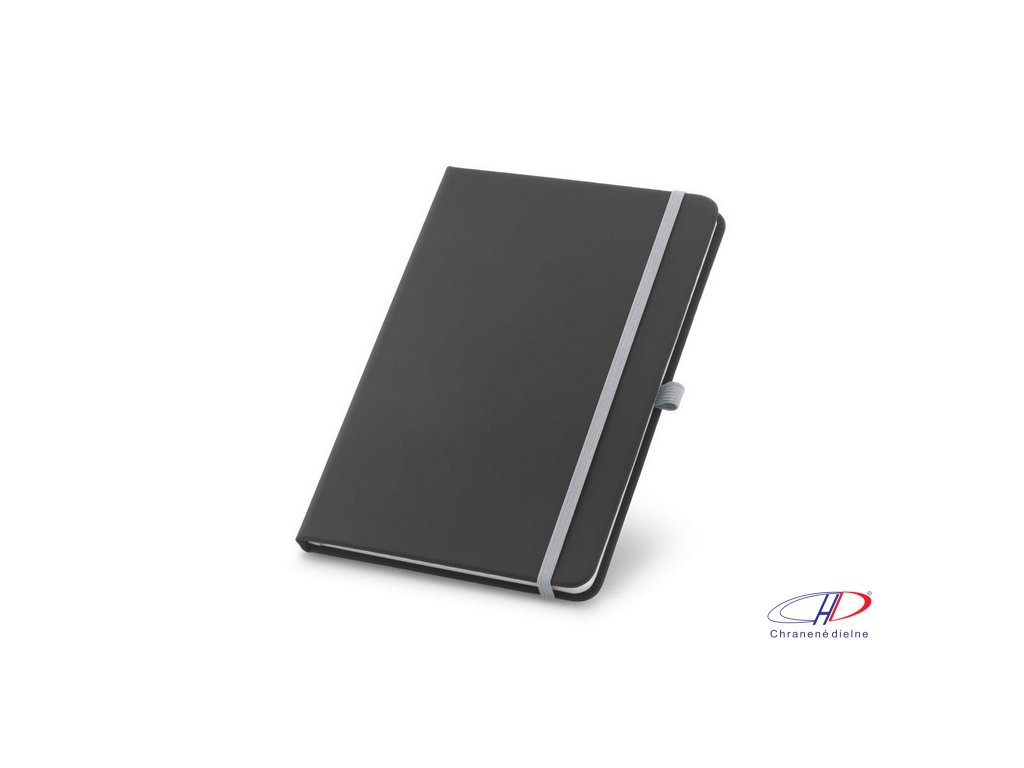 Zápisník A5 z imitácie kože s tvrdými doskami, 160 linajkovanými stranami a pútkom na pero (pero nie je súčasťou balenia).