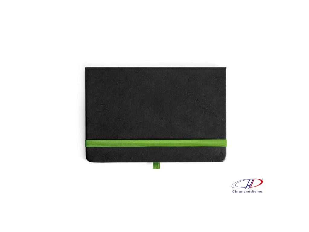 Poznámkový blok A5 s PU tvrdou väzbou a 160 linajkovými stranami. Laserové gravírovanie tohto zápisníka bude ladiť s kontrastnou farbou gumičky. Má stuhu na záložky, vnútorné vrecko a držiak na pero (pero nie je súčasťou balenia)