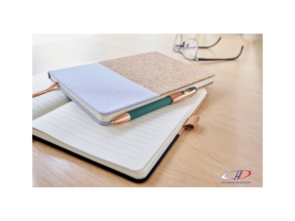 Zápisník z korku a bavlny (cca A5) s 80 linajkovými stranami. Vrátane pútka na pero.Dodatočné parametre