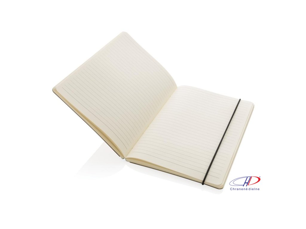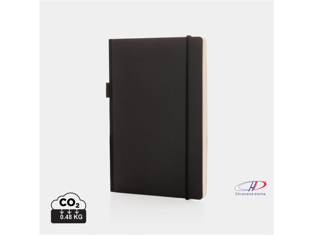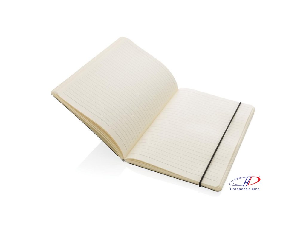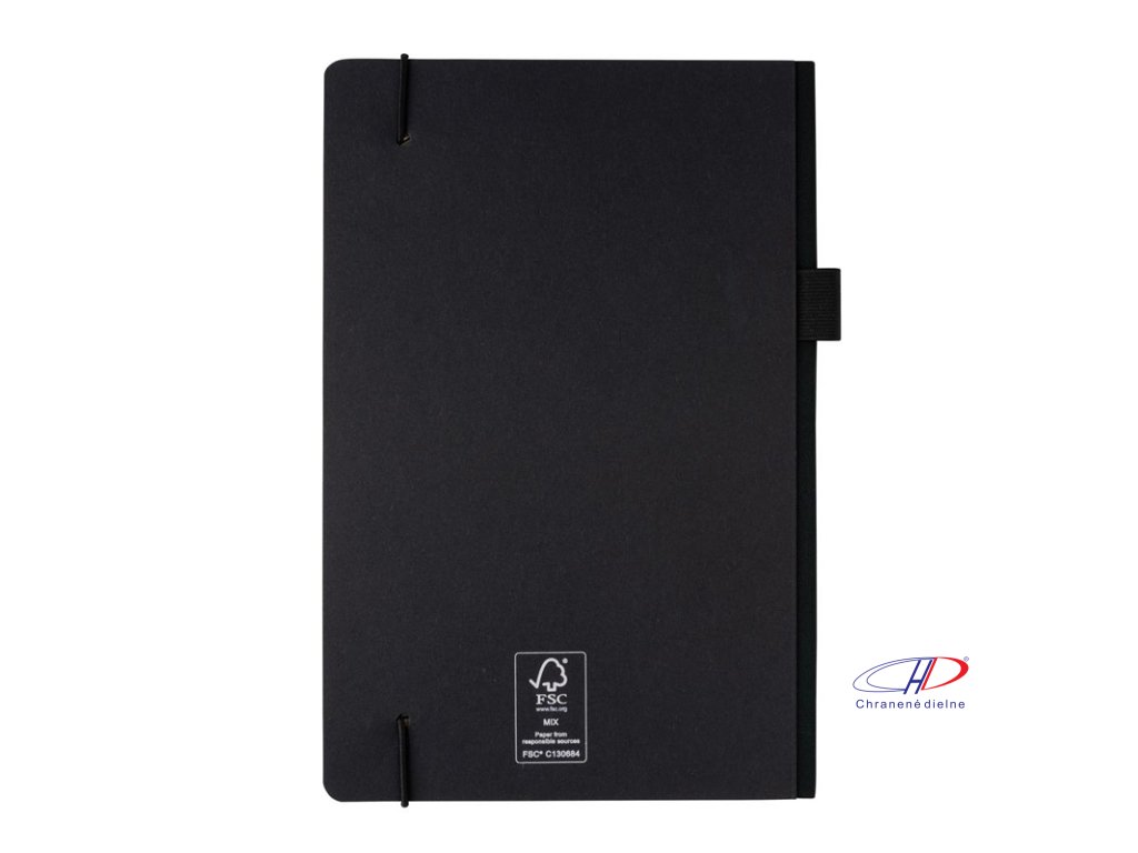 Zápisník vo formáte A5 s tvrdou väzbou z FSC® certifikovaného papiera. Záložka a pútko na pero v zladenej čiernej farbe. Vrecko v zadnej časti na uchovanie poznámok. Obsahuje 80 listov/160 strán krémového linajkového FSC® certifikovaného papiera.Dodatočné parametre