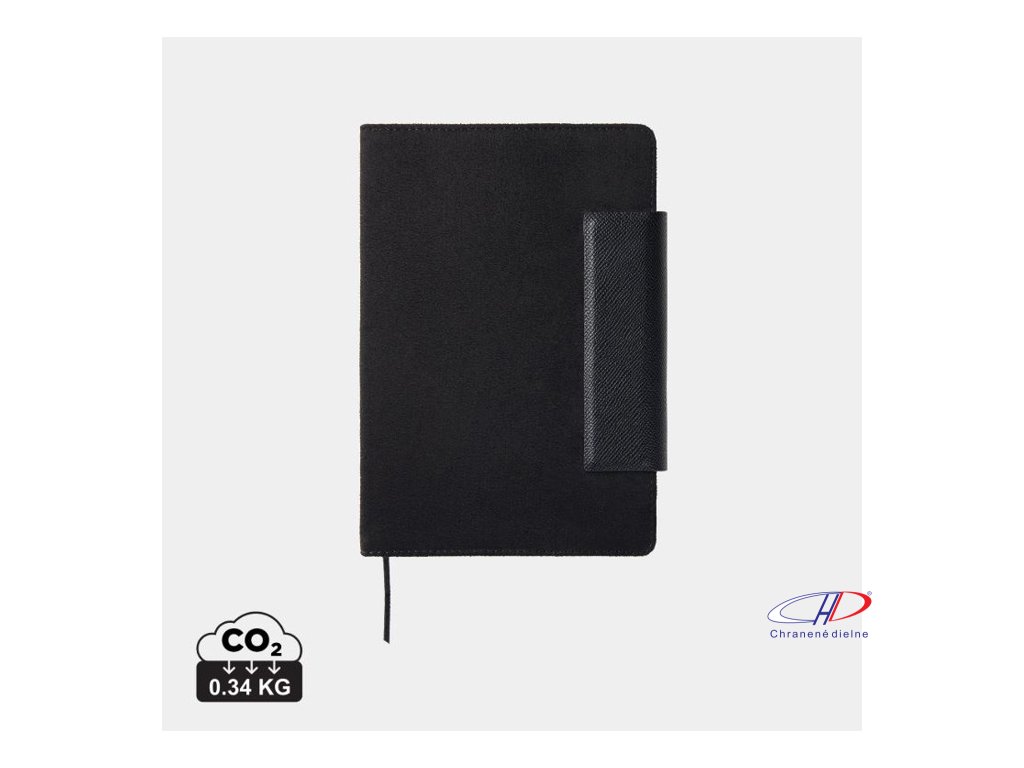 Štýlový zápisník formátu A5 so 160 linajkovanými stranami (80 listov). Má praktické a elegantné magnetické uzatváranie. Certifikovaný podľa GRS. Tento produkt obsahuje 50?% recyklovaného papiera a 6?% recyklovaného polyesteru s GRS certifikáciou.Dodatočné parametre