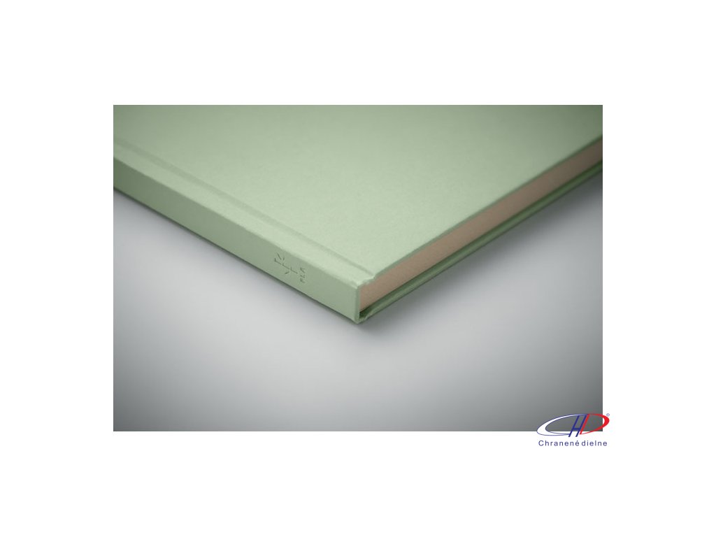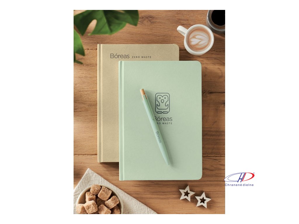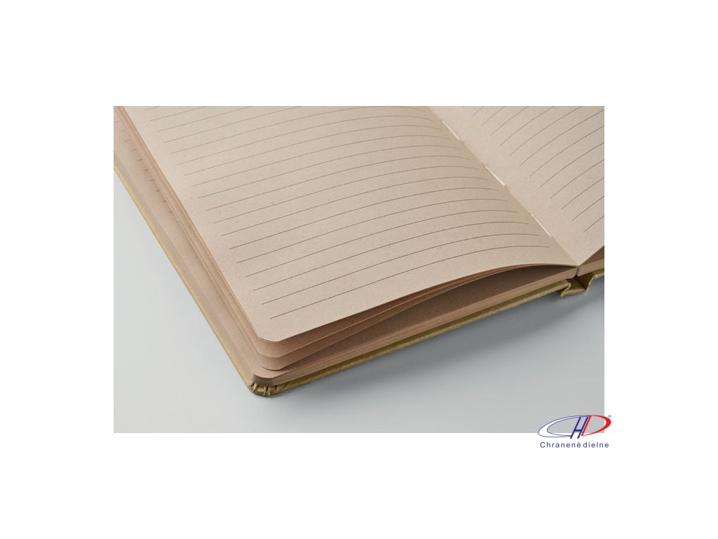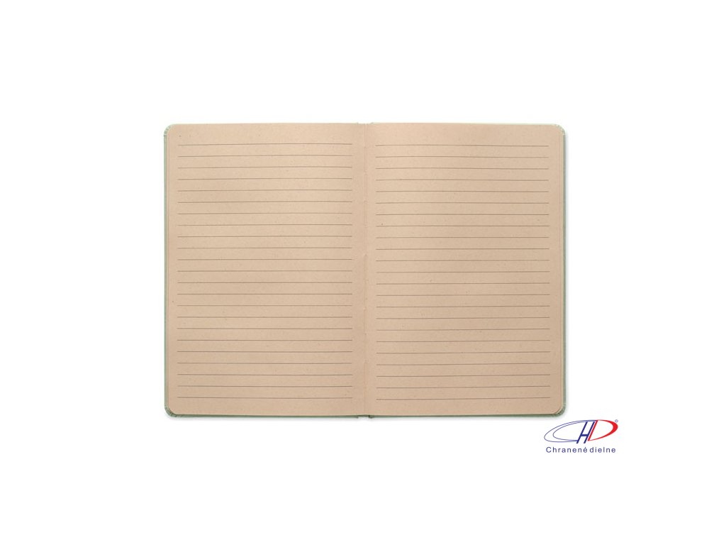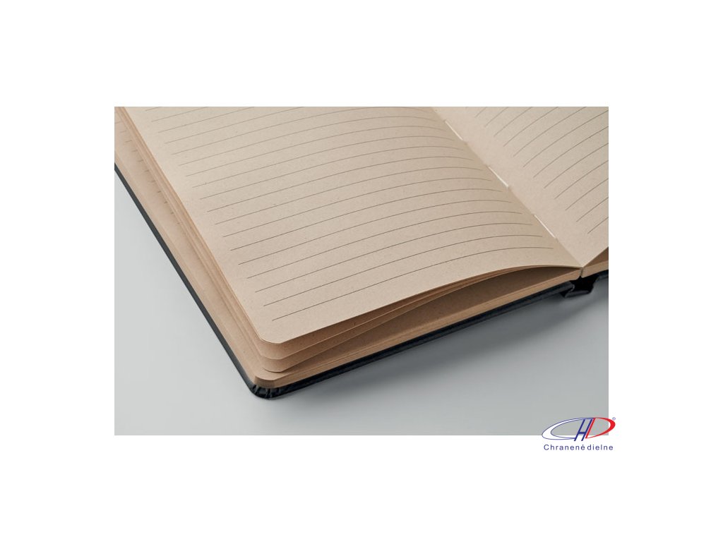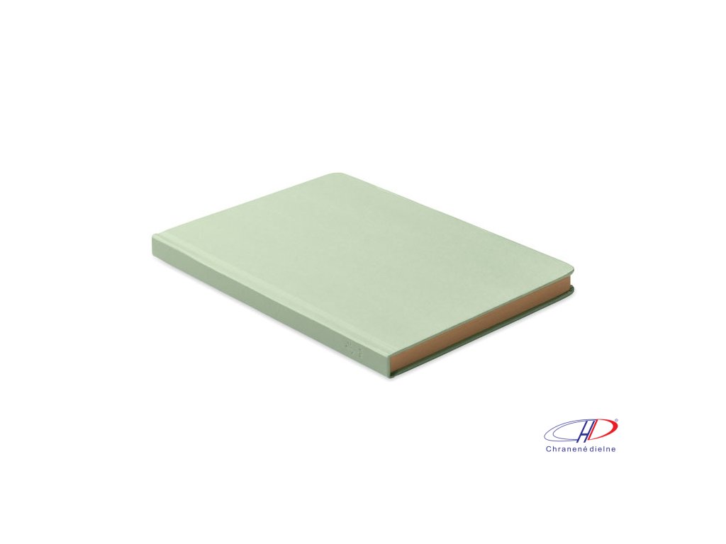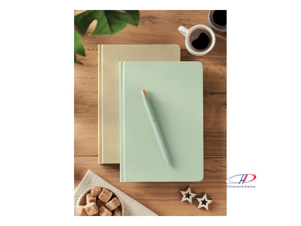 Zápisník A5 s tvrdým obalom a 160 linajkovými stranami (80 listov) z PLA cukrovej trstiny (65 % vlákna cukrovej trstiny / 35 % papiera).Dodatočné parametre