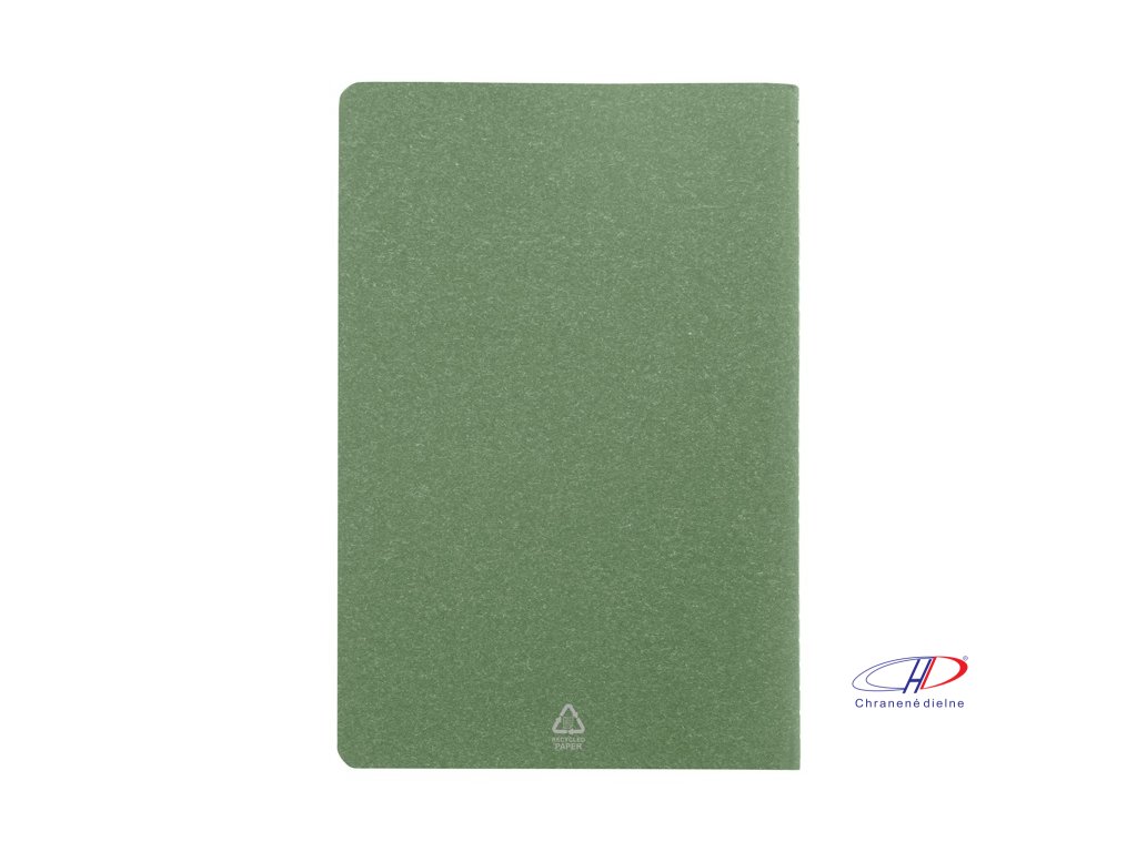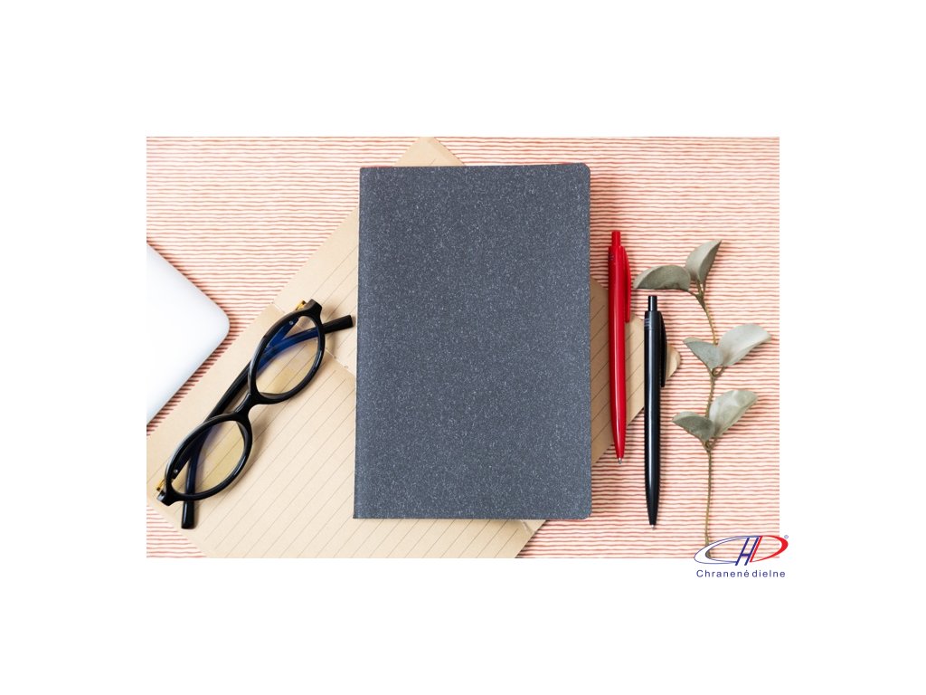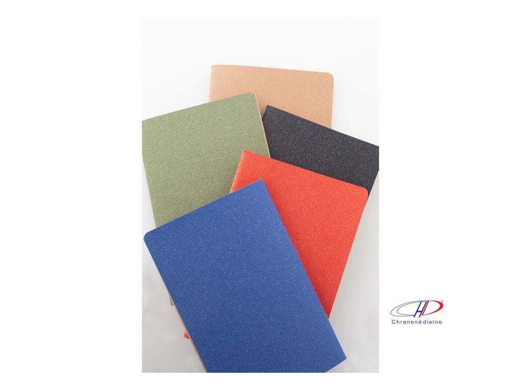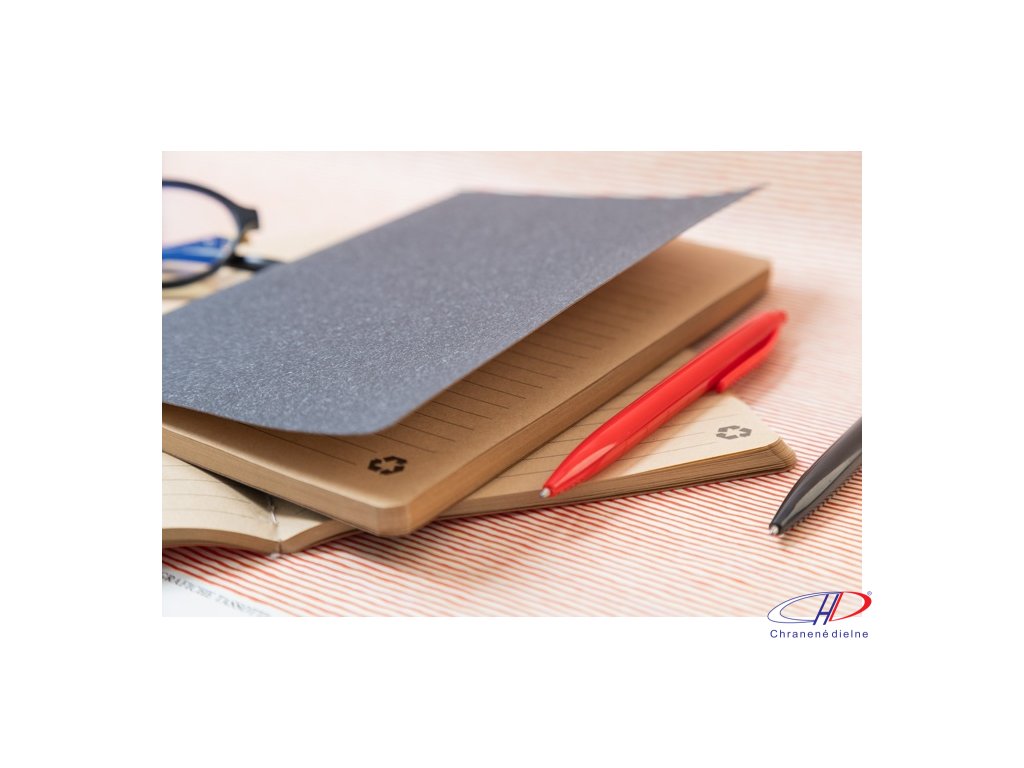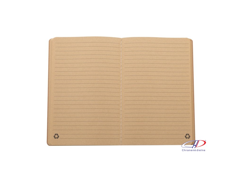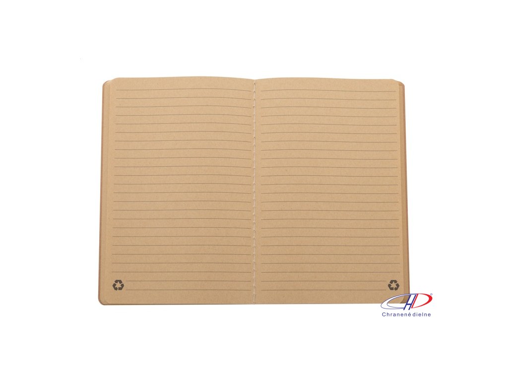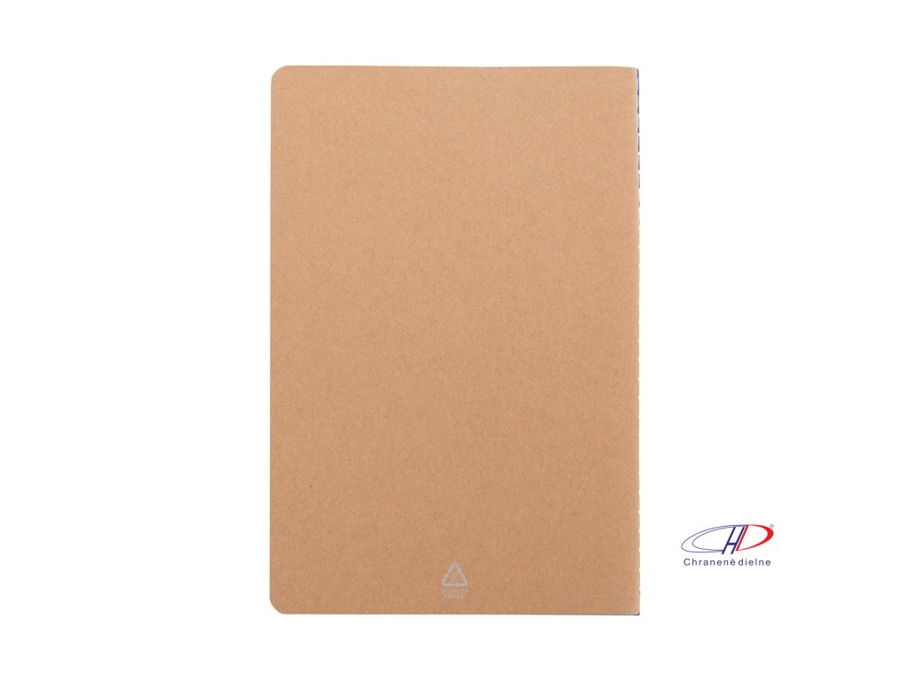 Blok A5 potiahnutý recyklovaným papierom so šitým prebalom a 60 prázdnymi listami recyklovaného kraftového papiera.Dodatočné parametre