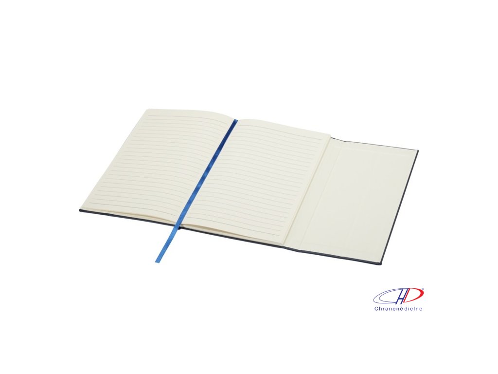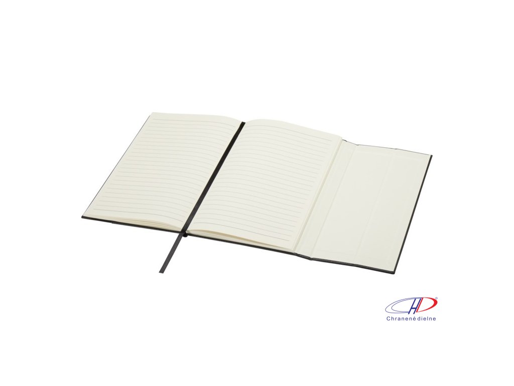 Zápisník Alexandra formátu A5 s pevnou obálkou vyrobený z recyklovaného PU plastu a RPET s 80 linajkovými listami papiera v krémovej farbe o gramáži 70 g/m2 je vybavený záložkou a rozšíriteľným vreckom.Dodatočné parametre