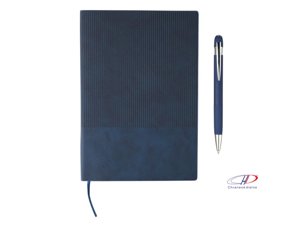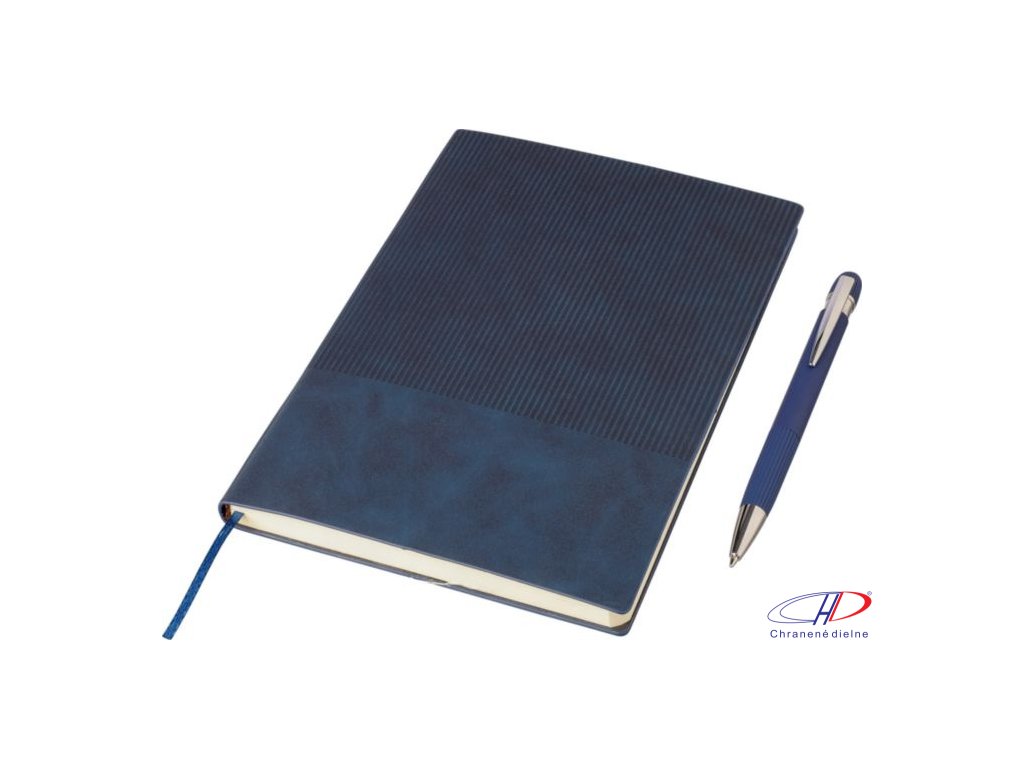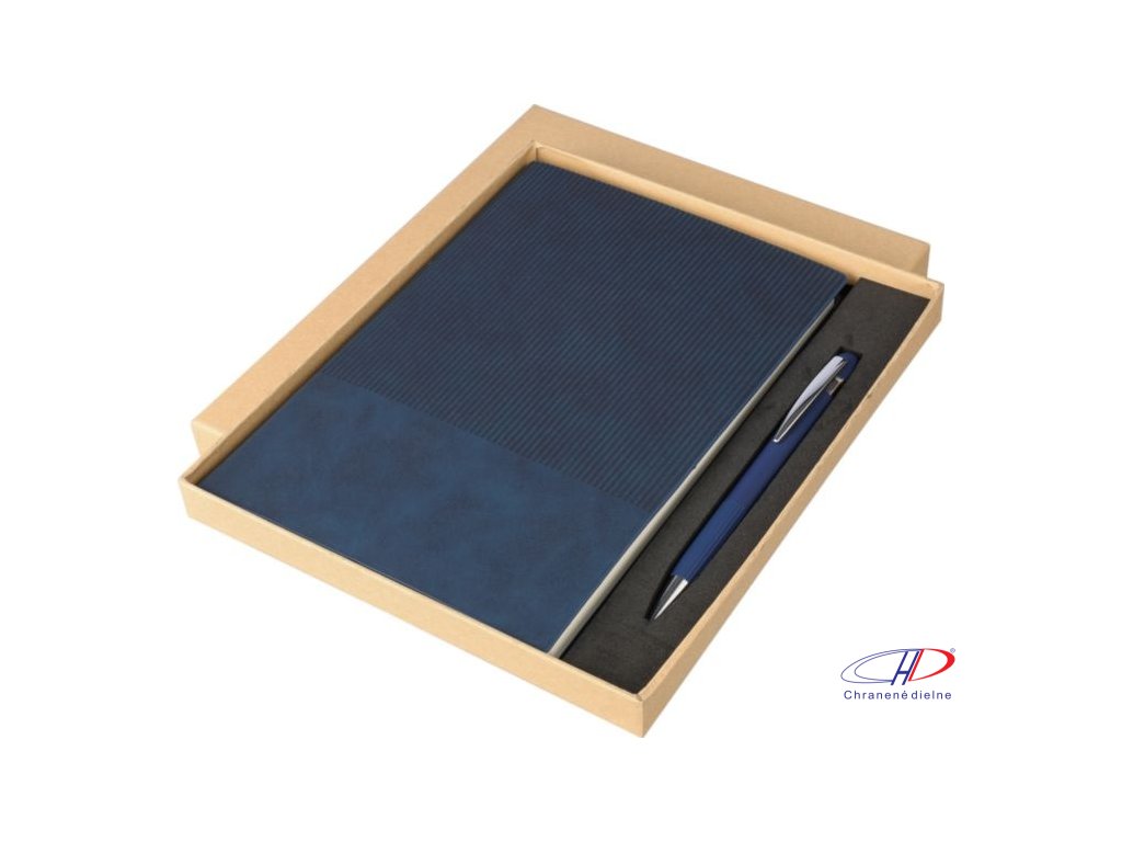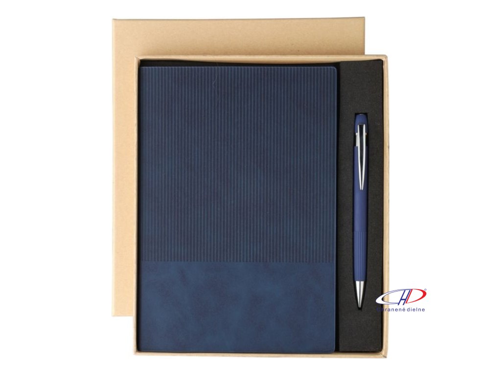 Sada obsahuje zápisník A5 (100 linajkových strán z 80 g/m2 papiera) guľôčkové pero (modrá náplň) z recyklovaného hliníka s pogumovanou úpravou. Balené v pevnej hnedej kartónovej krabici s vložkou z EVA pre guľôčkové pero.Dodatočné parametre