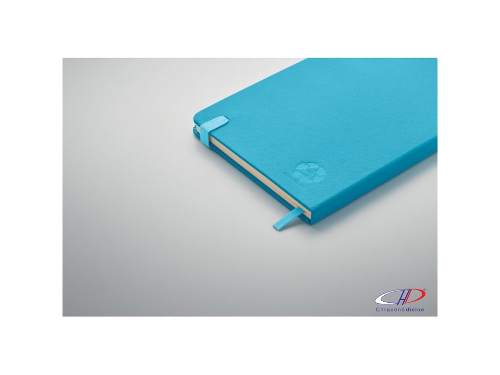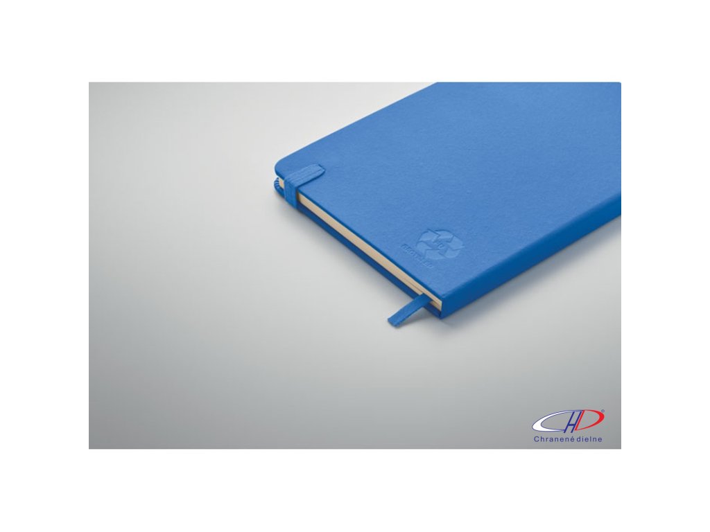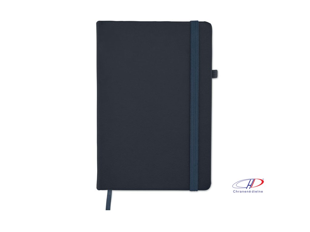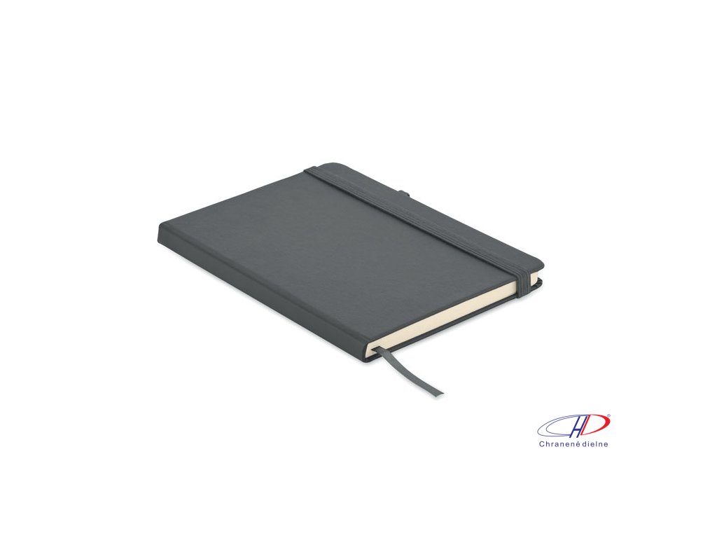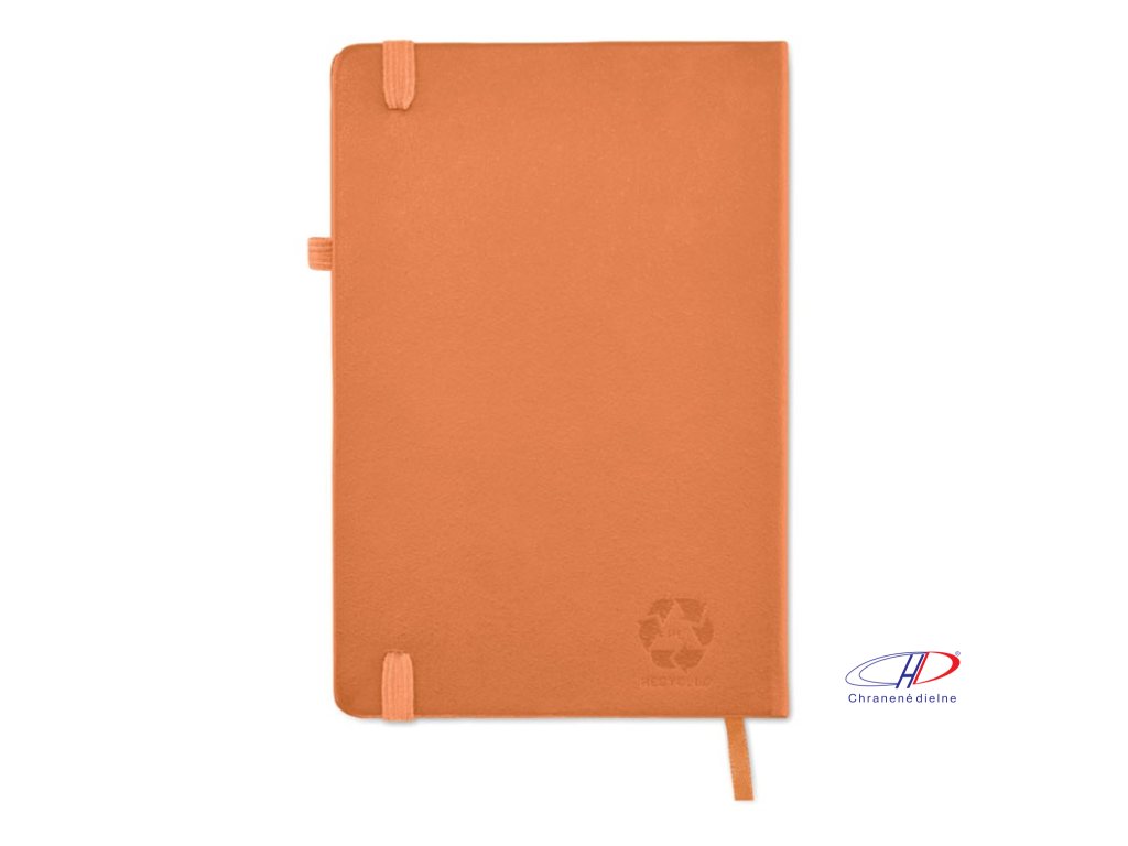 Zápisník formátu A5 s obálkou zo 70% recyklovanej predprodukčnej kože a 30% latexového PU. Recyklovaný papier, 192 linkovaných strán (96 listov). Elastická gumička a držiak na pero.Dodatočné parametre