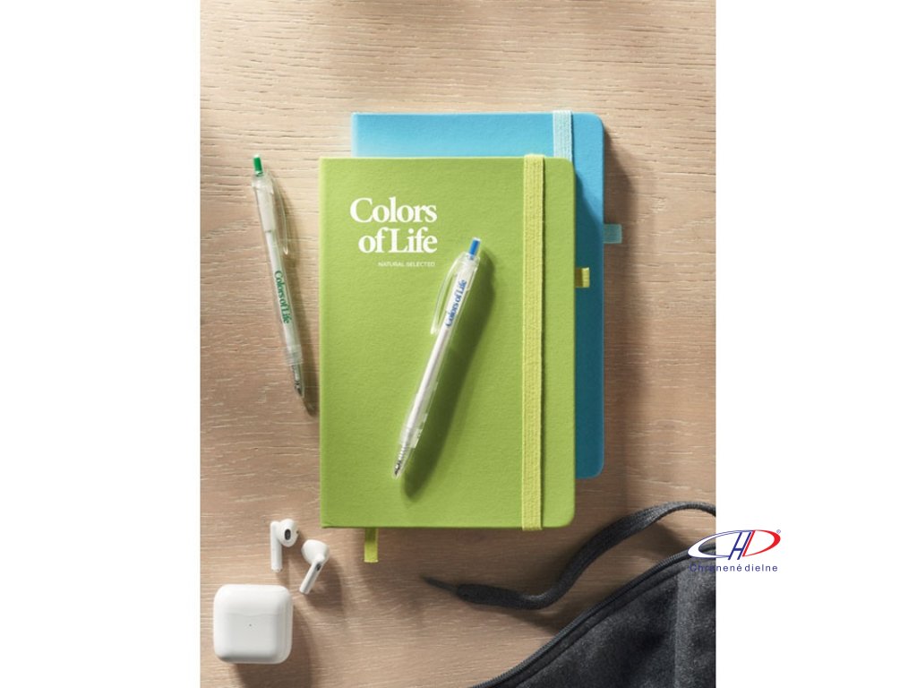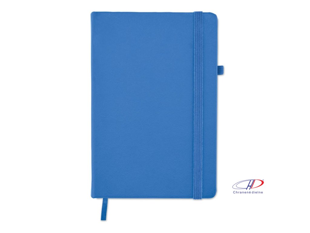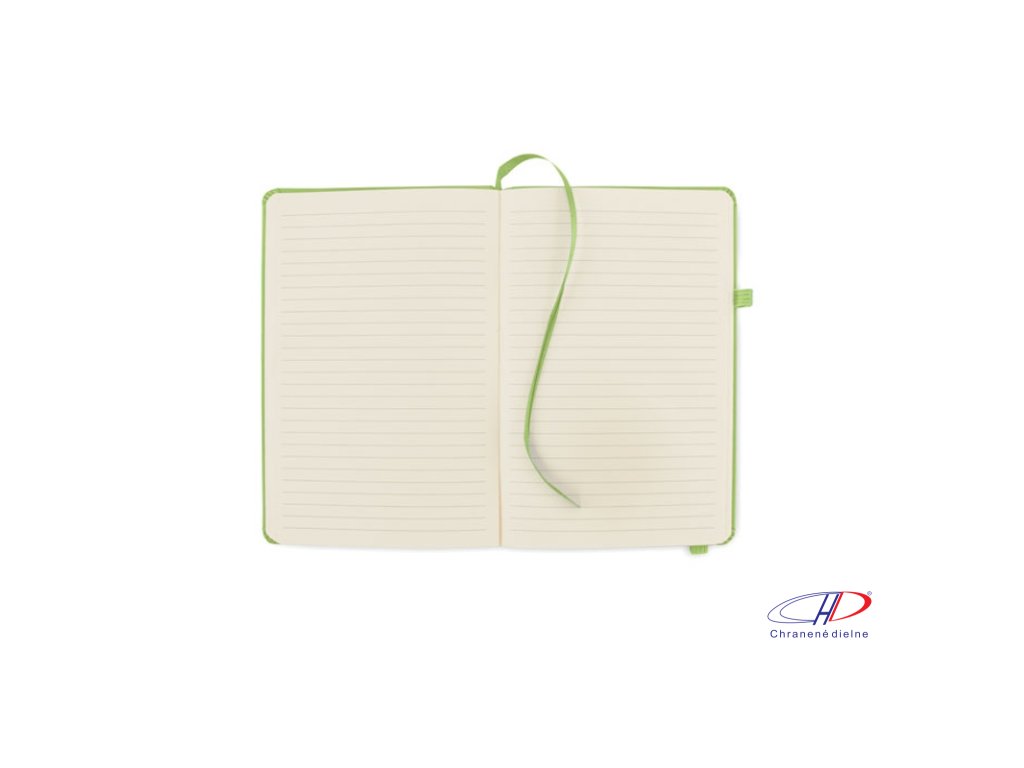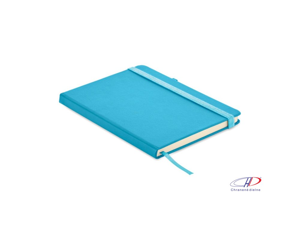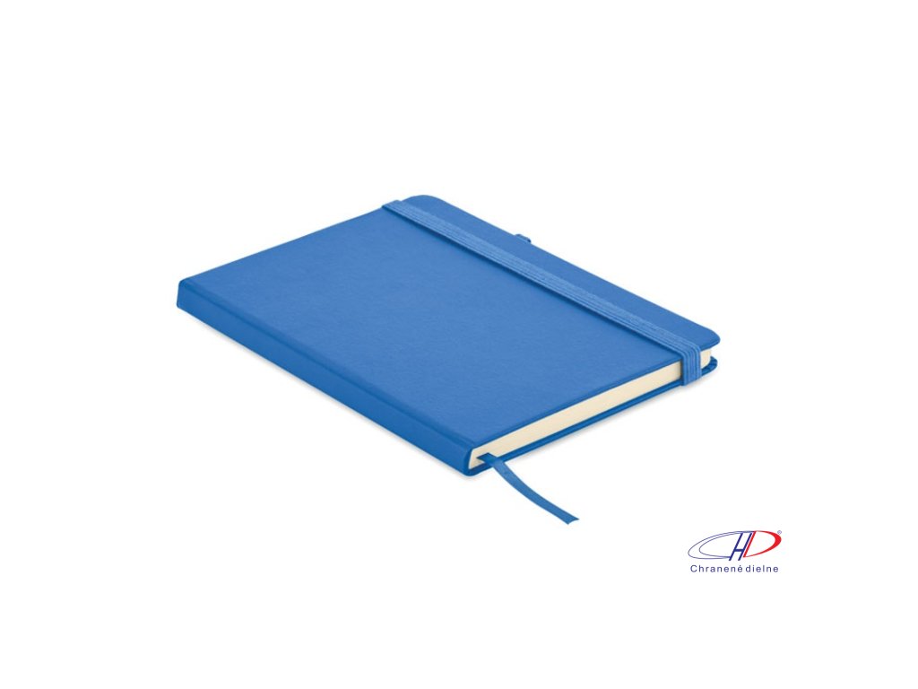 Zápisník formátu A5 s obálkou zo 70% recyklovanej predprodukčnej kože a 30% latexového PU. Recyklovaný papier, 192 linkovaných strán (96 listov). Elastická gumička a držiak na pero.Dodatočné parametre