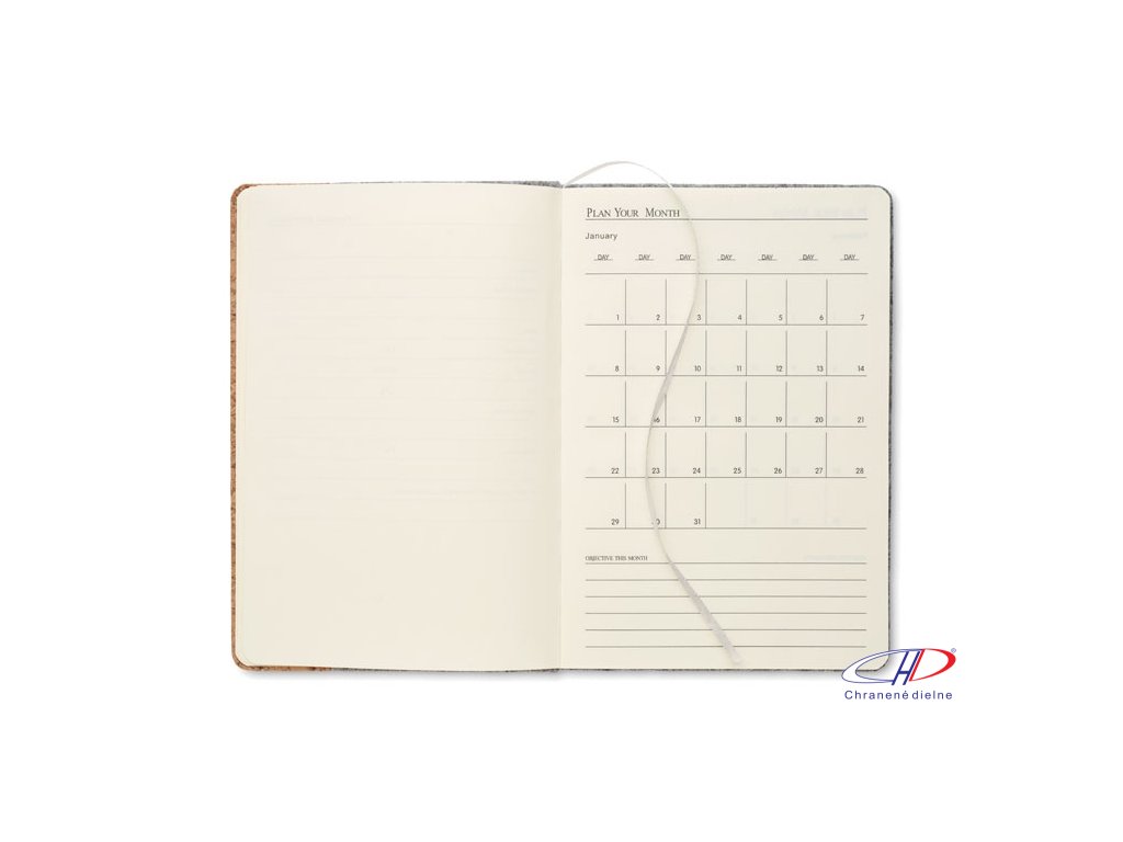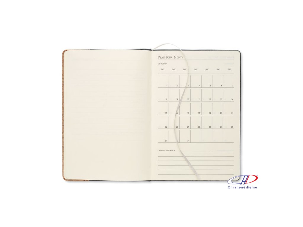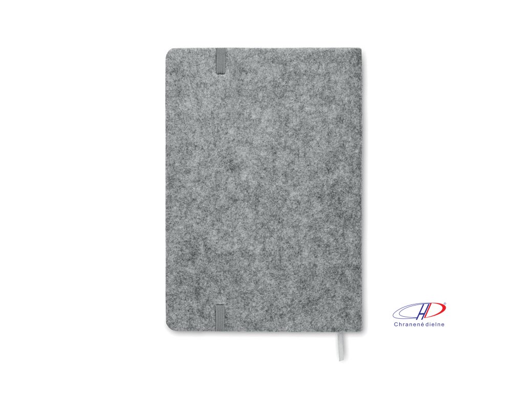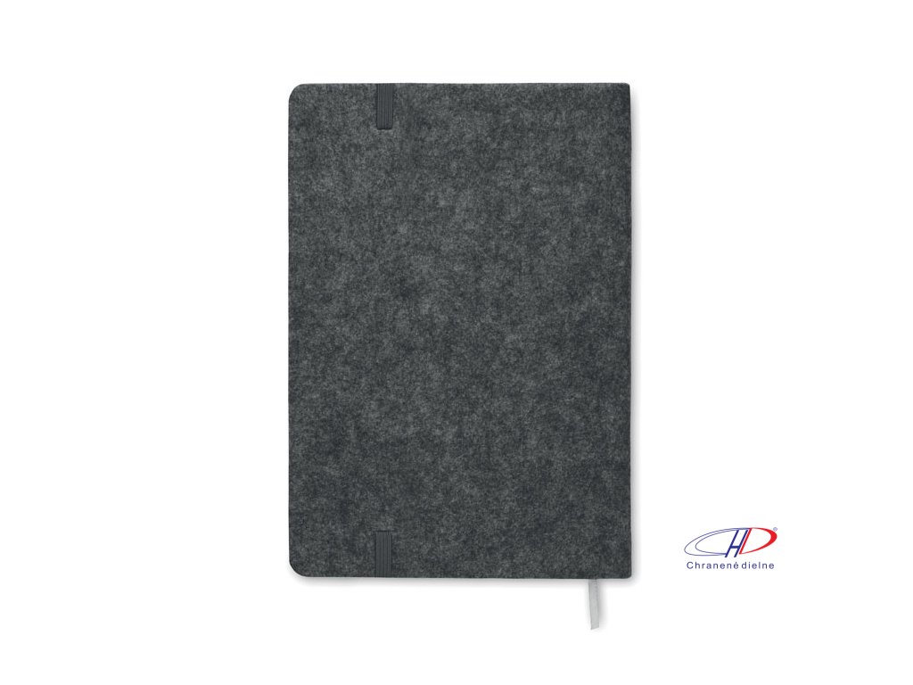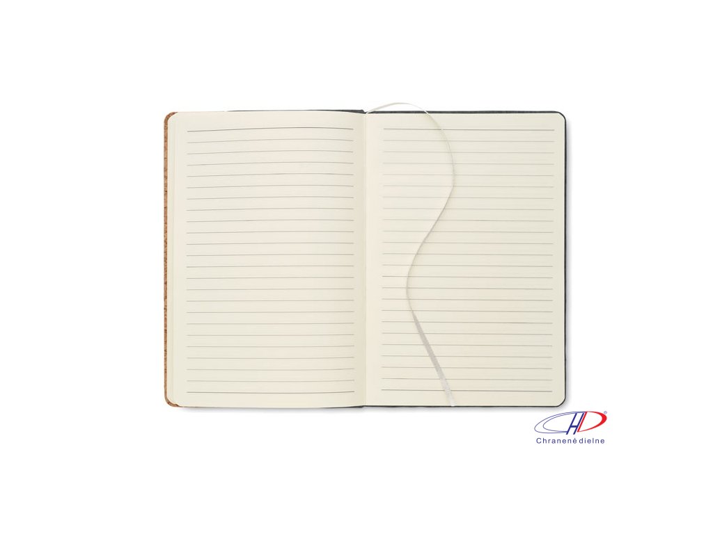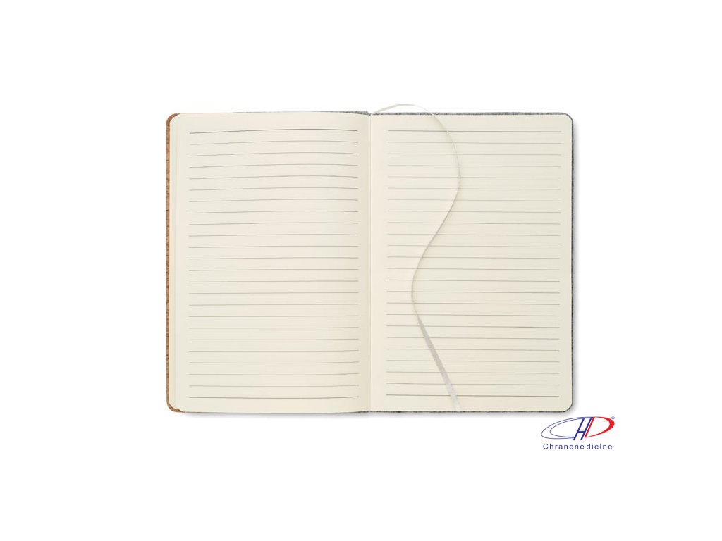 Zápisník A5 s RPET plsteným obalom a korkom. 160 linajkových strán z recyklovaného papiera (80 listov). Elastické pútko na pero vpredu, zodpovedajúci elastický remienok na zapínanie a záložka.Dodatočné parametre