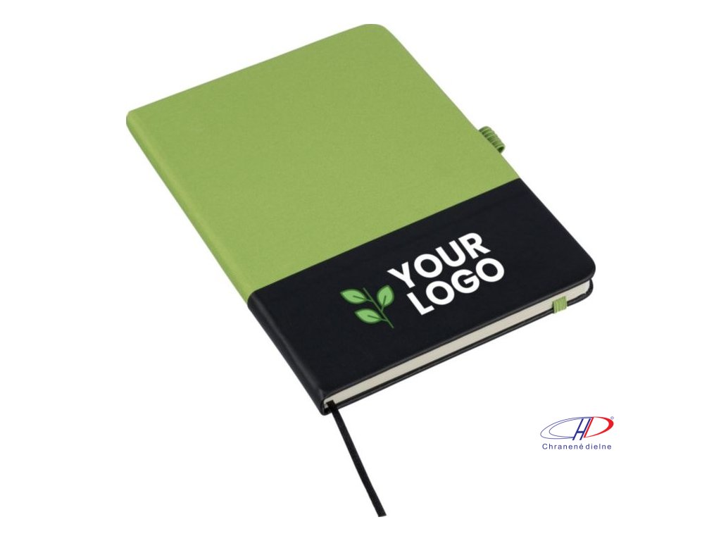 Zápisník A5 z RPET s čiastočne laserovateľnou PU prednou stranou. Po gravírovaní je logo zhodné s farbou RPET tkaniny. Obsahuje 80 linajkových strán s gramážou 70 g/m2, gumičku, pútko na pero a fixku.Dodatočné parametre