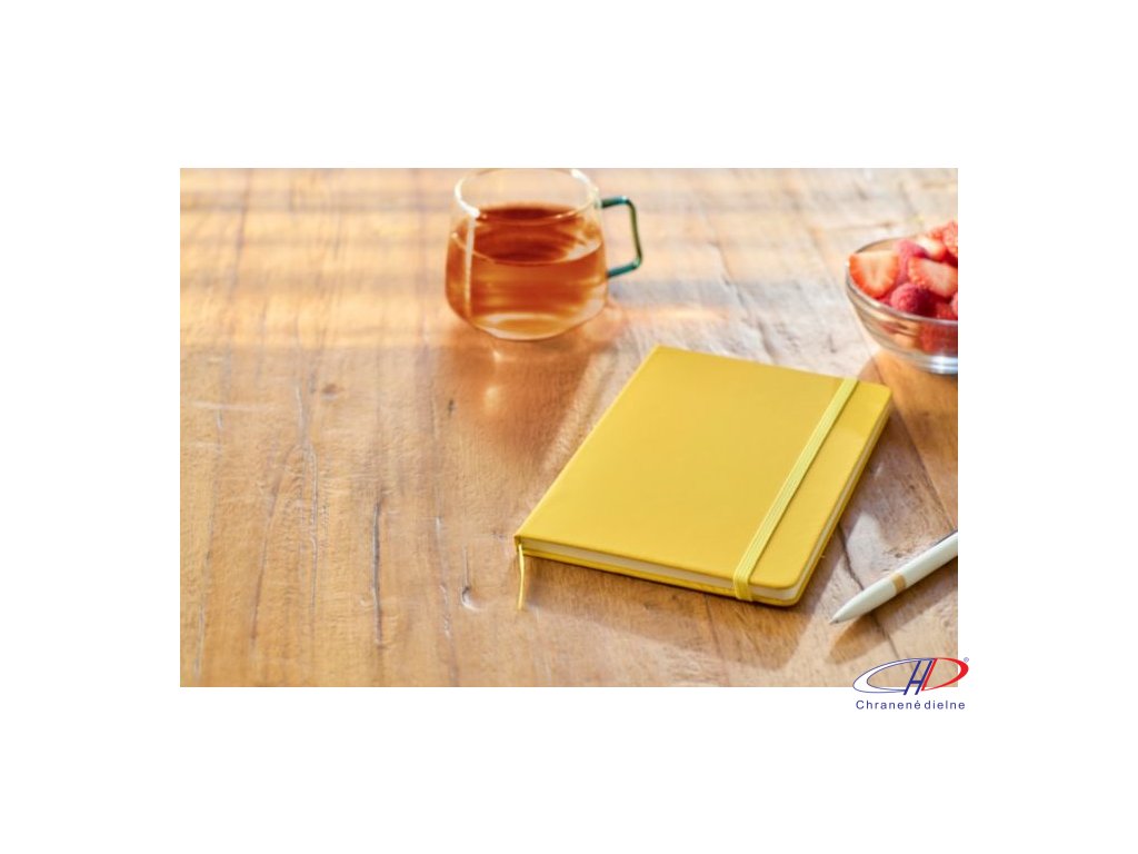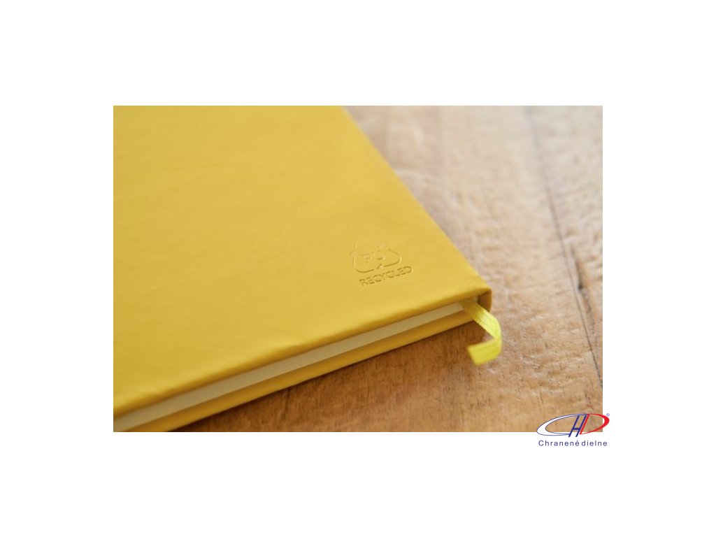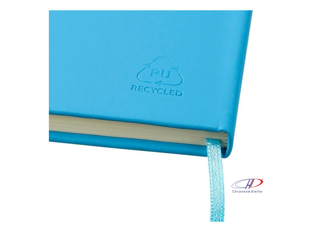 Zápisník z RPET s tvrdou väzbou z rPET PU, obsahuje 80 linajkových strán (70 g/m2). S gumičkou a stuhou v zodpovedajúcej farbe. Na zadnej strane je vyrazené recyklované logo.Dodatočné parametre