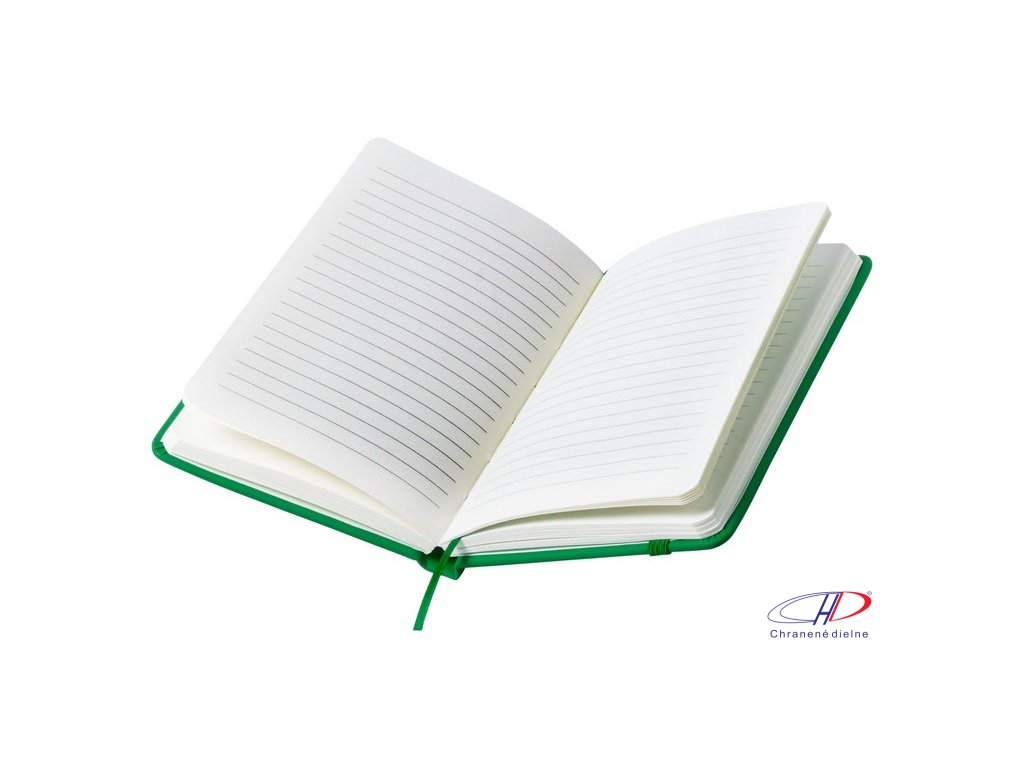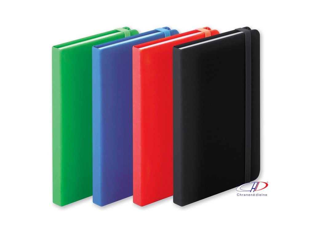 Blok s doskami z PU kože, so 100 linajkovými listami, záložkou a gumičkou.