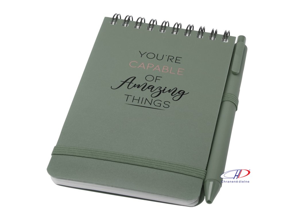 Zápisník A6 s pevnou obálkou z recyklovaného plastu, ktorý by inak skončil v oceáne, s 80 linkovanými listami papiera (70 g/m2) v krémovej farbe. Zápisník má zaoblené rohy, elastické zatváranie a pútko na pero plastu z oceánu. Dĺžka písania: 1000 m.Dodatočné parametre