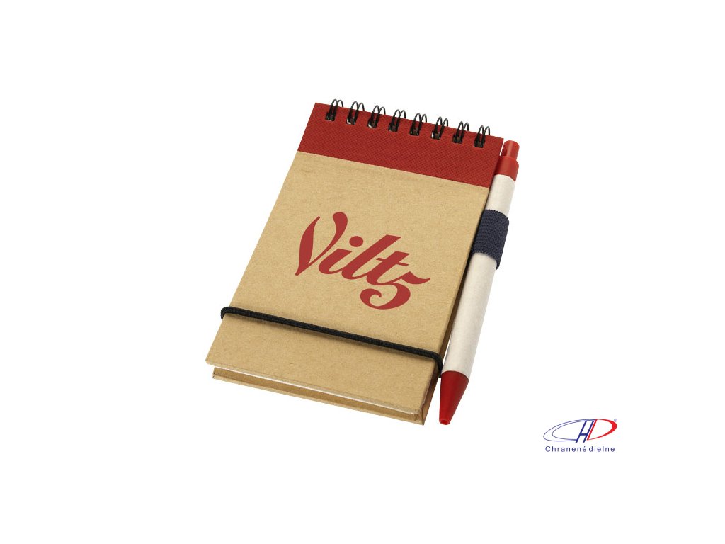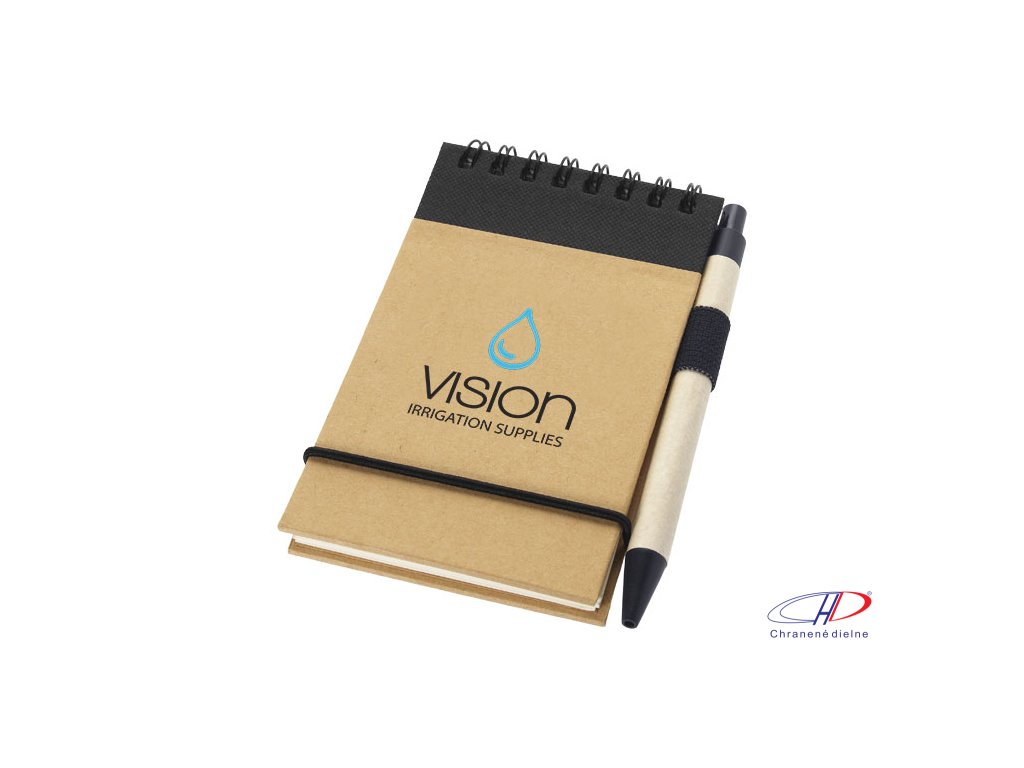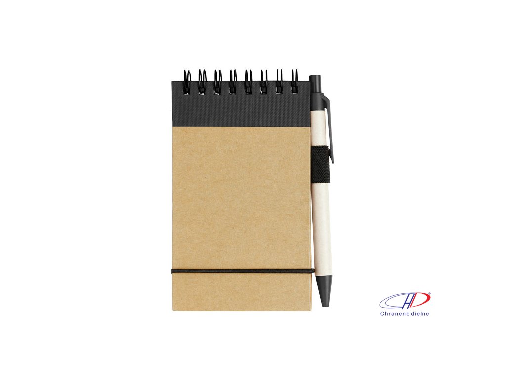 Malý poznámkový blok obsahuje 40 linkovaných listov referenčného recyklovaného papiera A7 je udržateľnou voľbou. Pero má čiernu náplň.