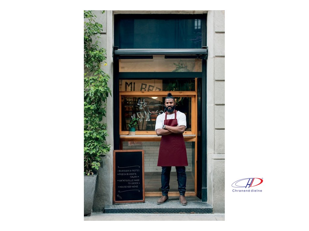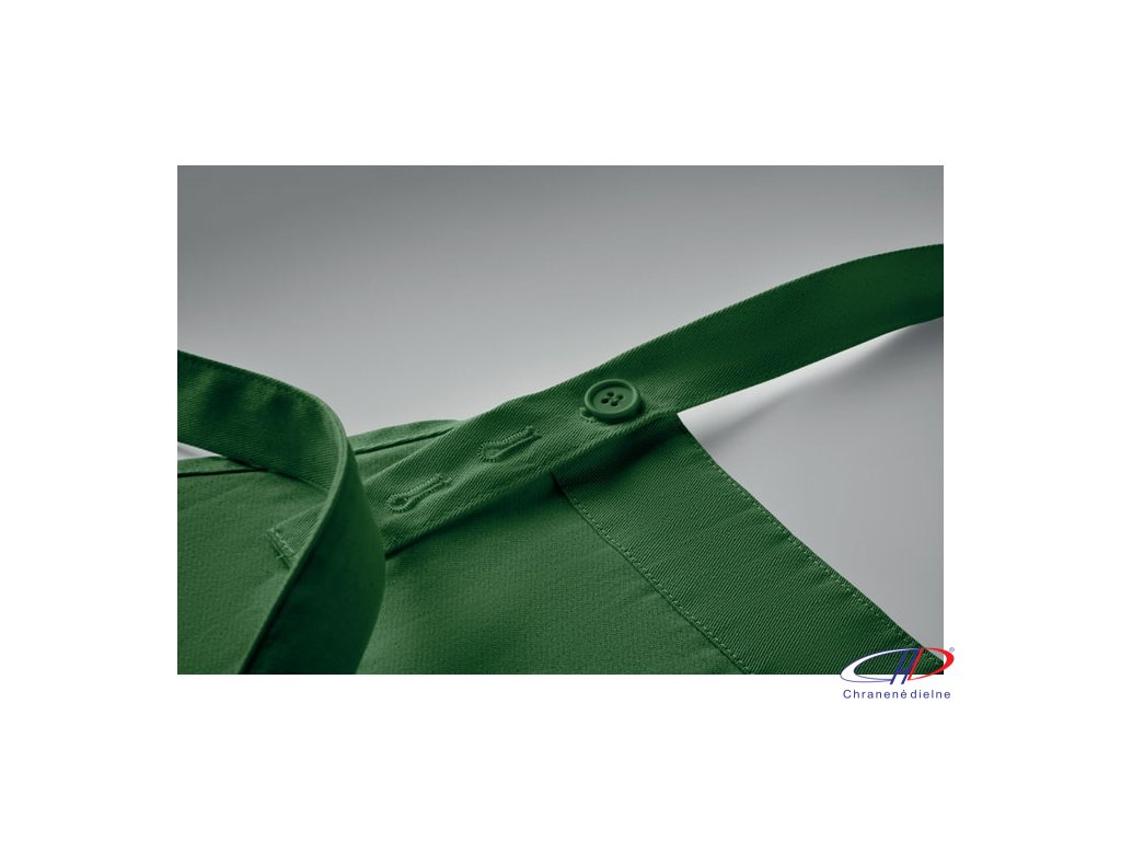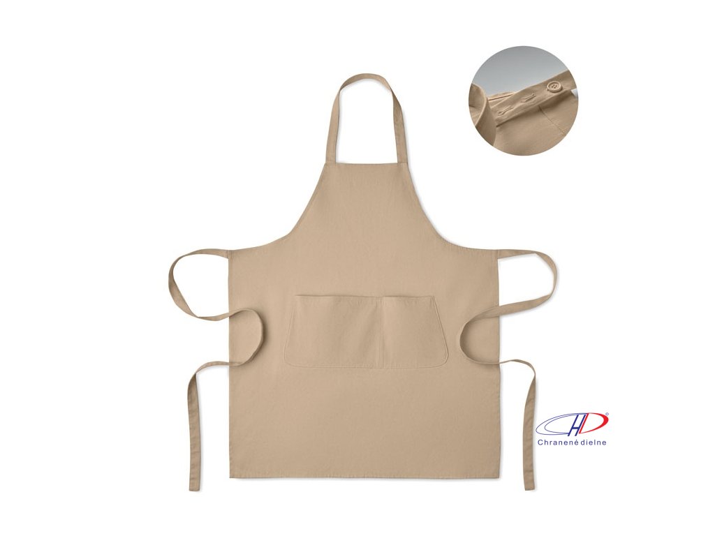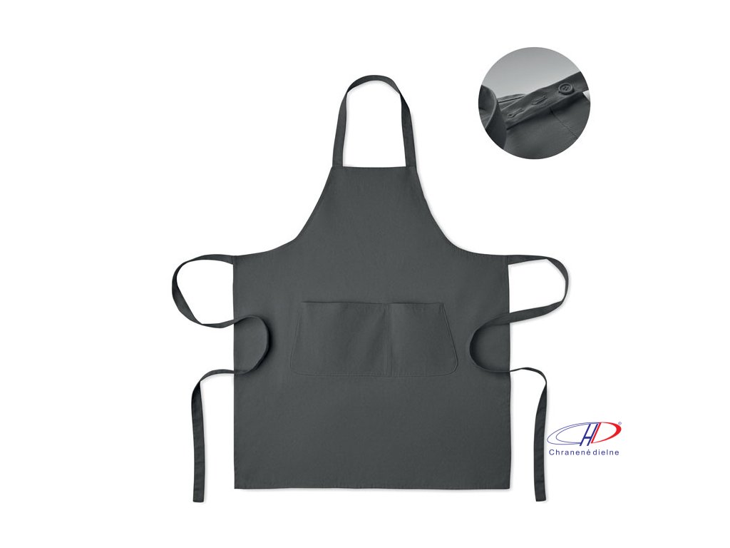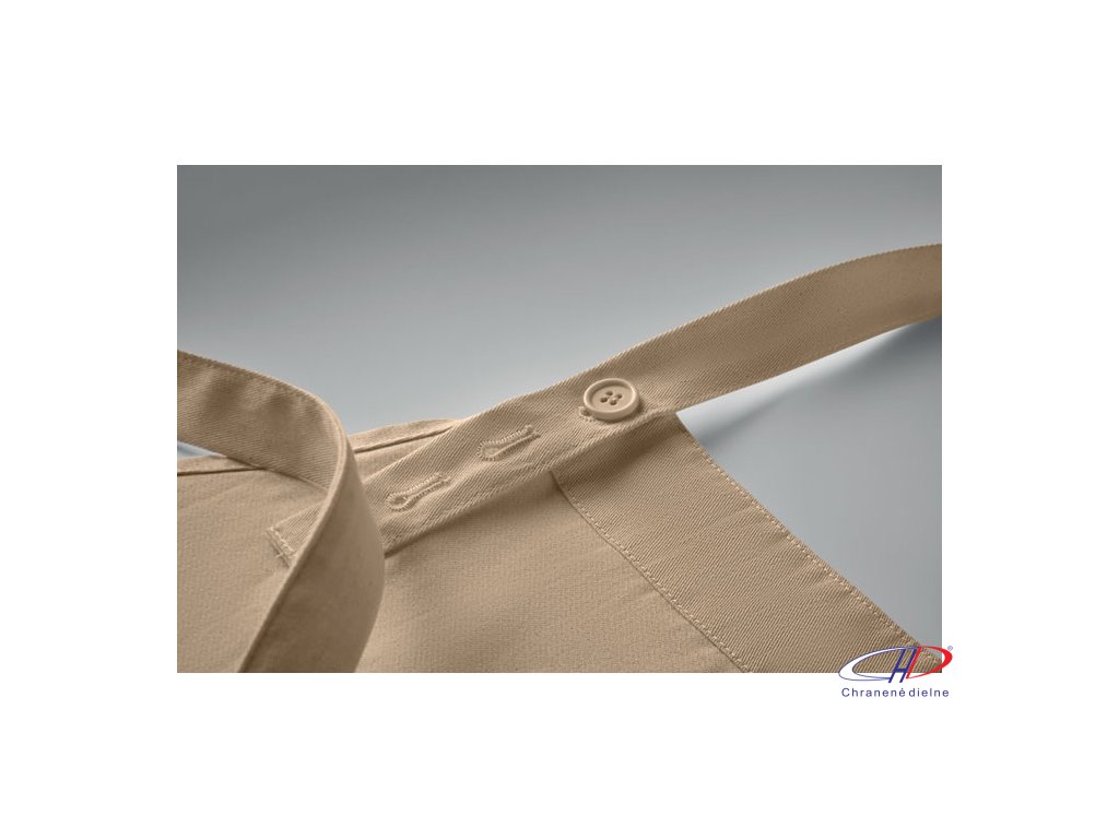 Nastaviteľná zástera s 1 veľkým predným vreckom s 2 priehradkami z organickej bavlny s gramážou 240 g/m2. S nastaviteľným gombíkom na krčnom popruhu. Tento výrobok má certifikát OEKO-TEX® STANDARD 100.Dodatočné parametre