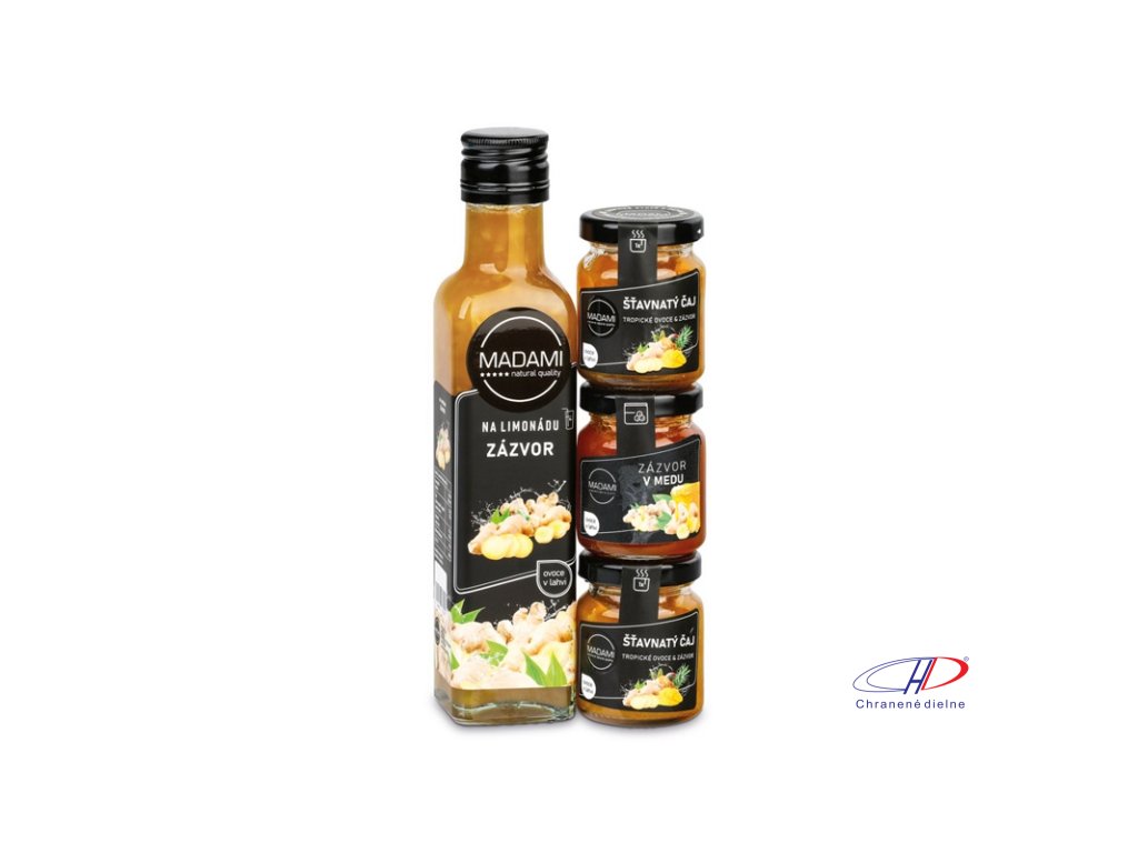 Zázvorový darčekový set, obsahuje ovocný koncentrát so zázvorom (250 ml), Zázvor v mede (68 g), pečený čaj Citrusová zmes so zázvorom (2x55 ml).Dodatočné parametre